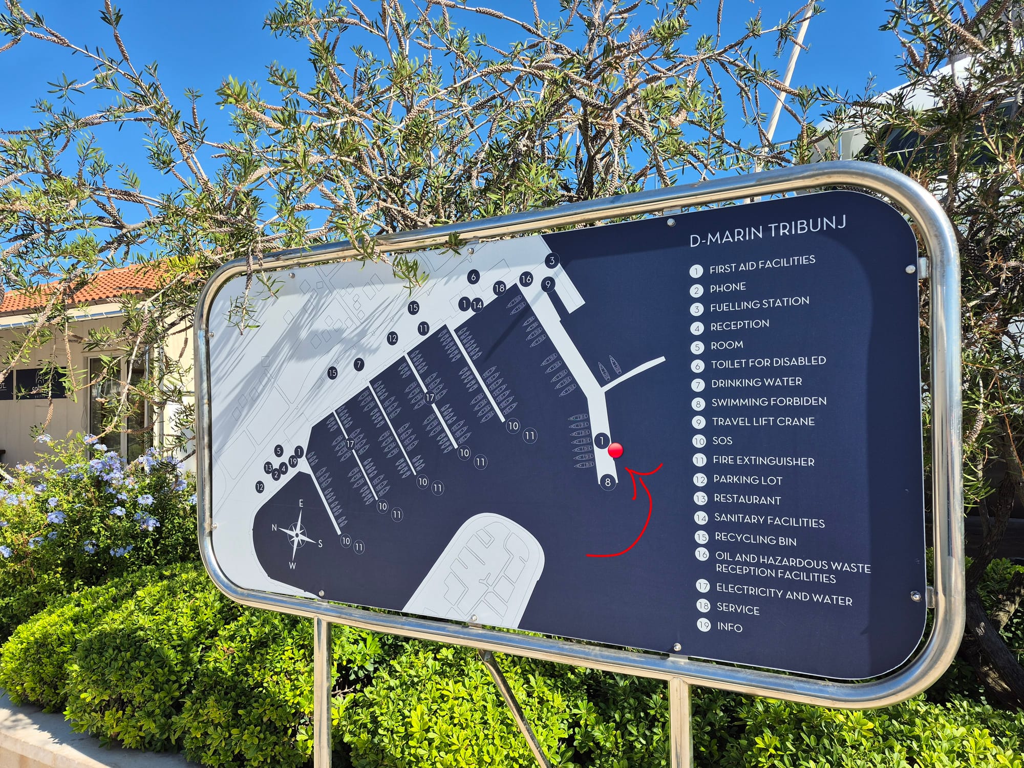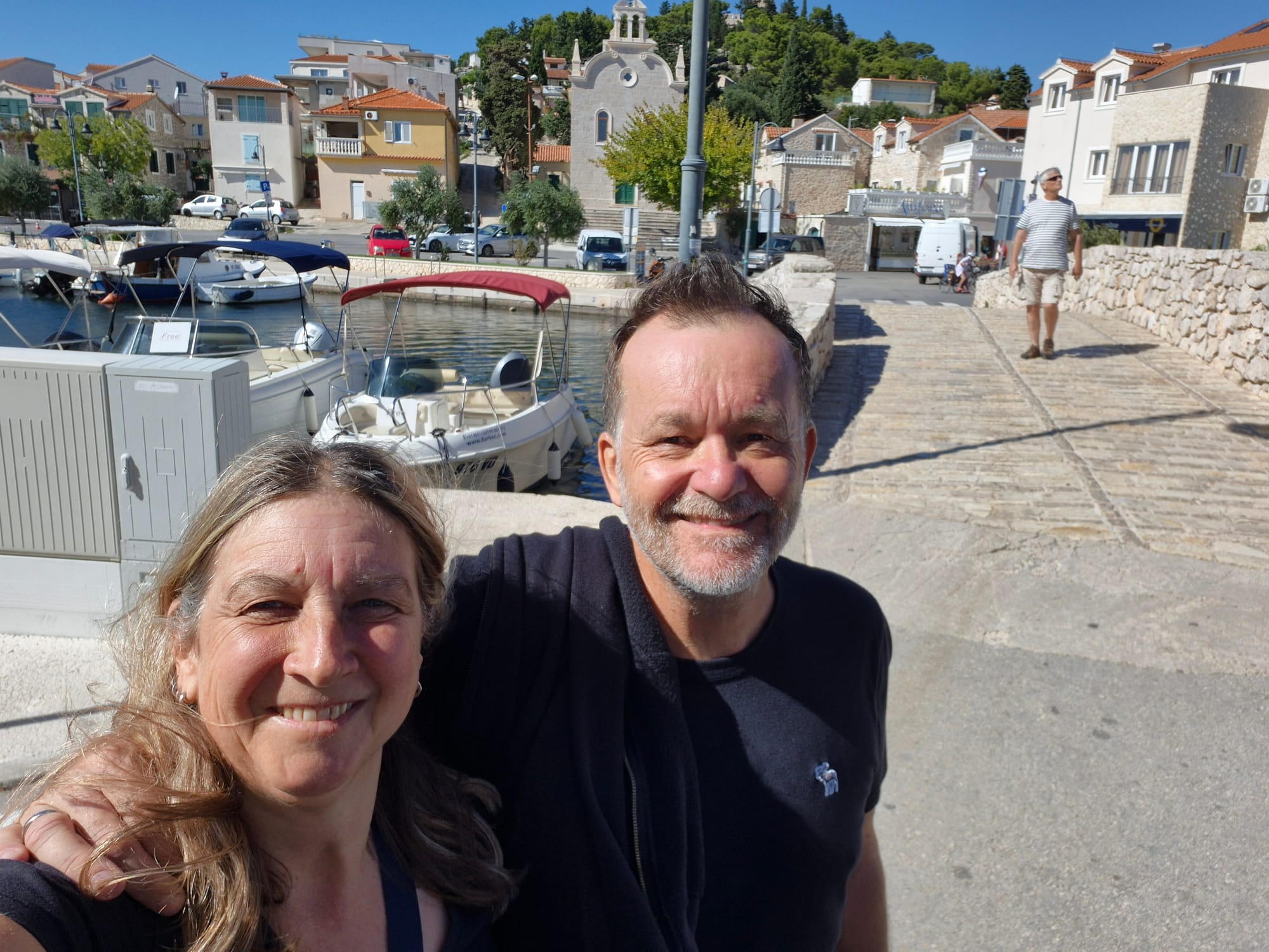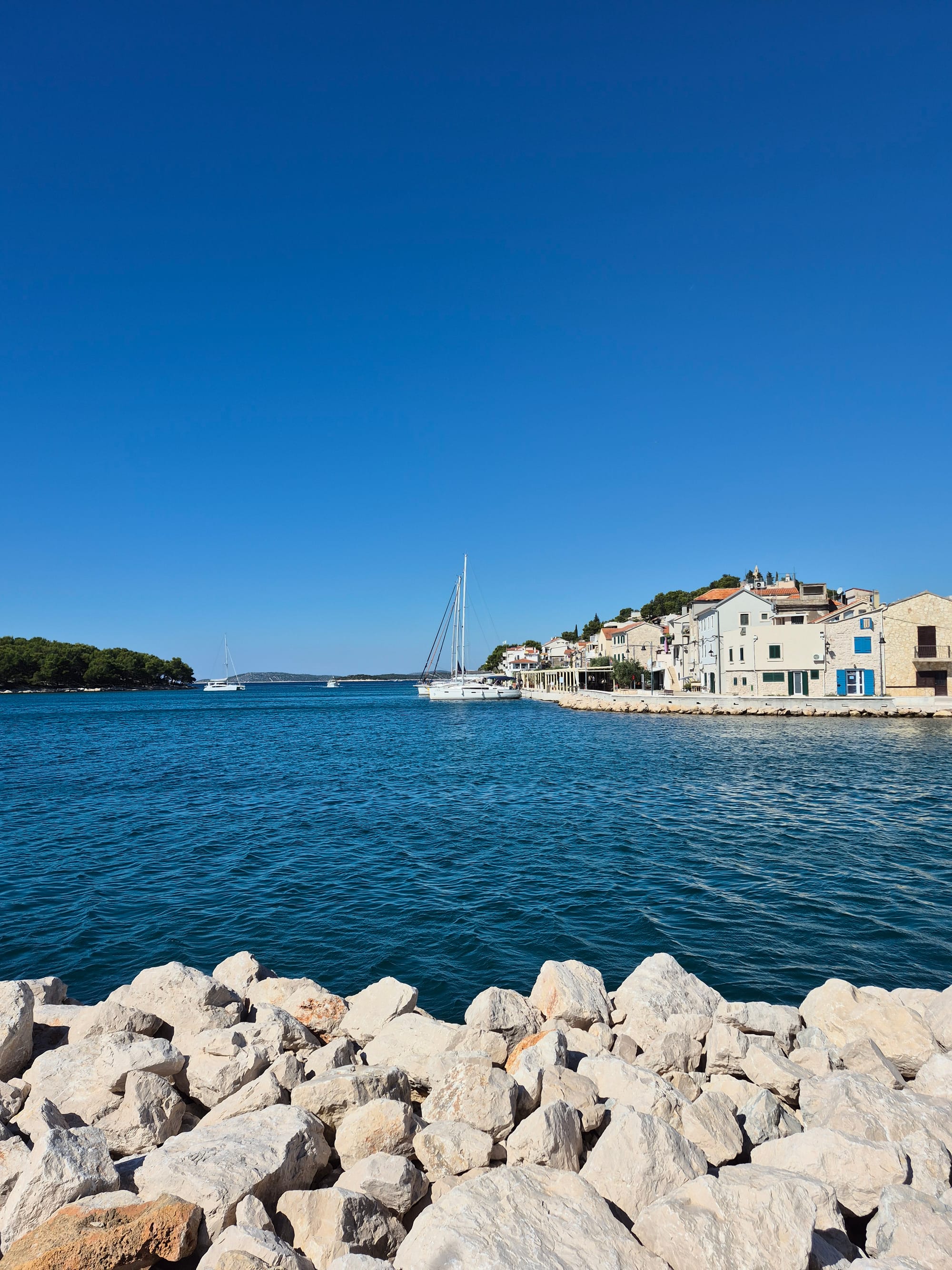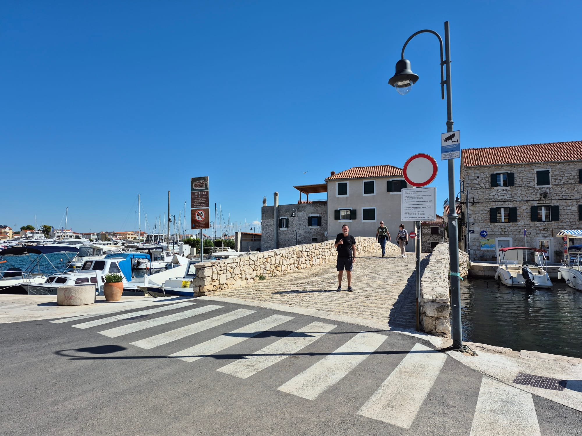 Ich sehe mich um und entdecke, dass wir gleich neben dem Stadthafen von Alt Tribunj liegen.