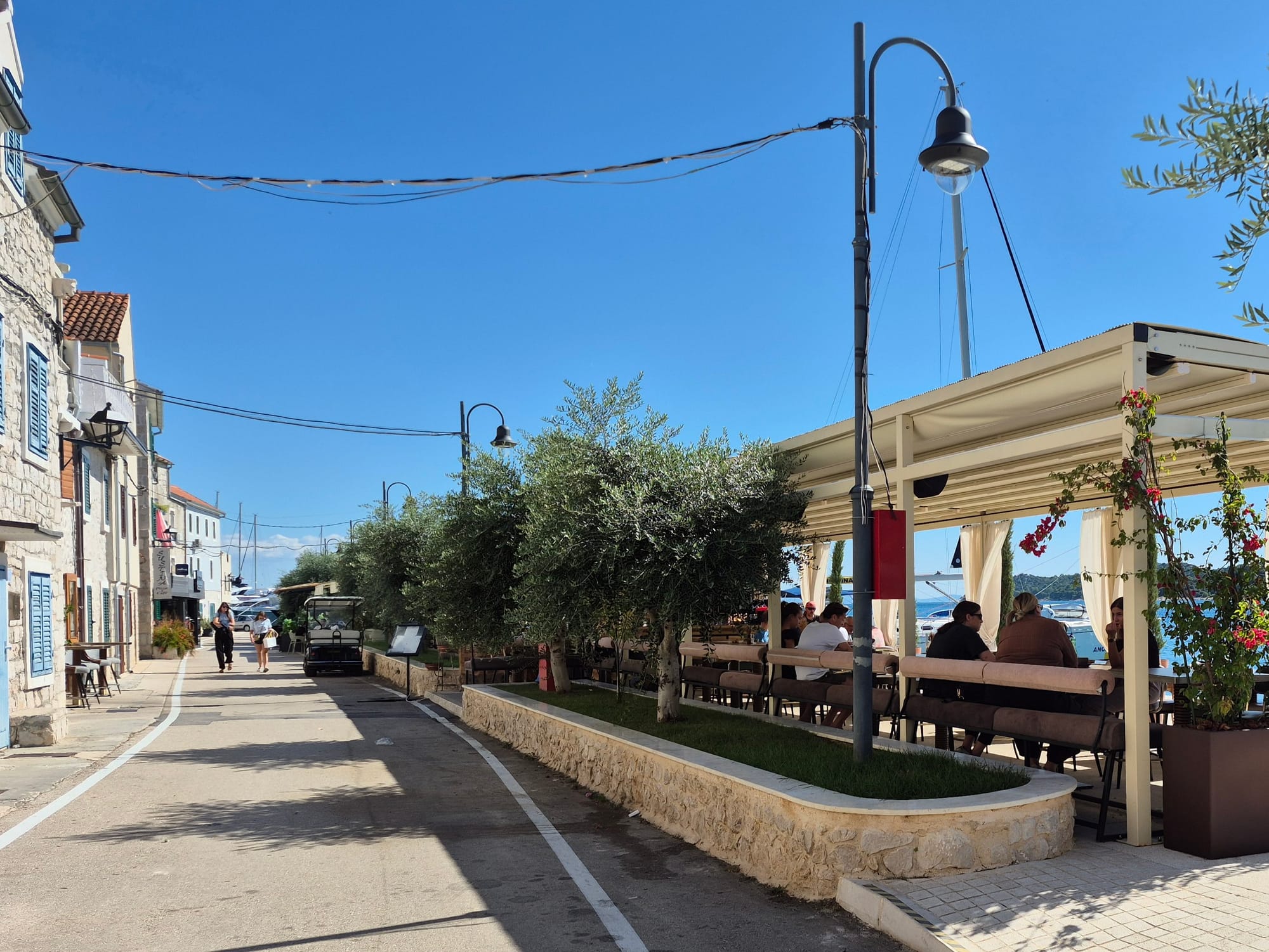 Zu Mittag spazieren wir in den kleinen Ort Tribunj...