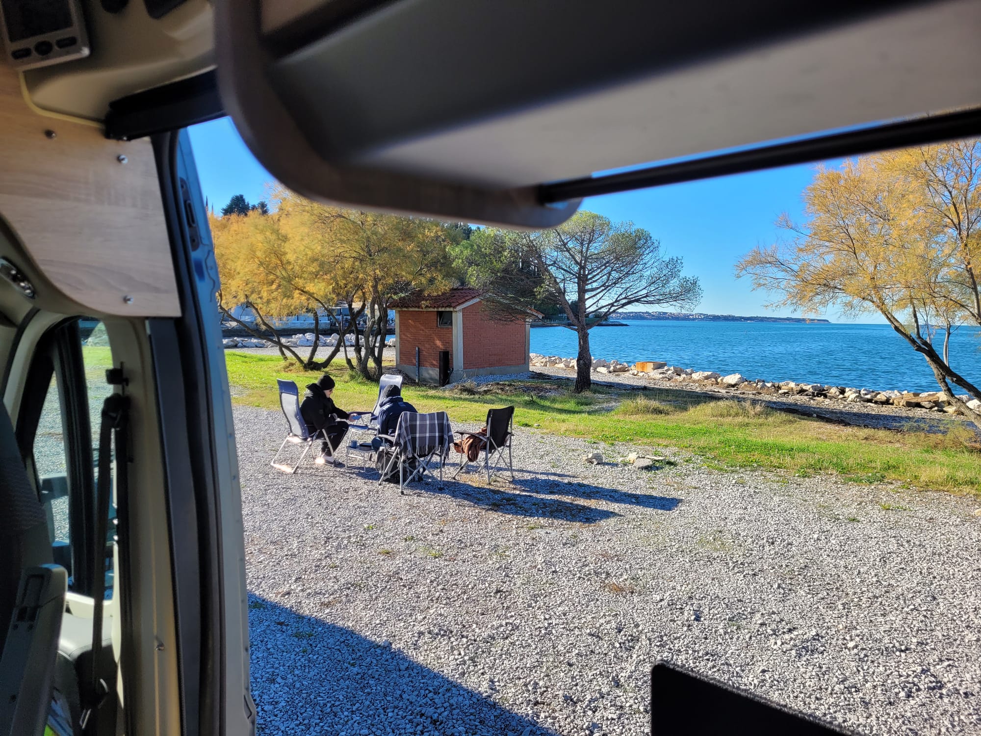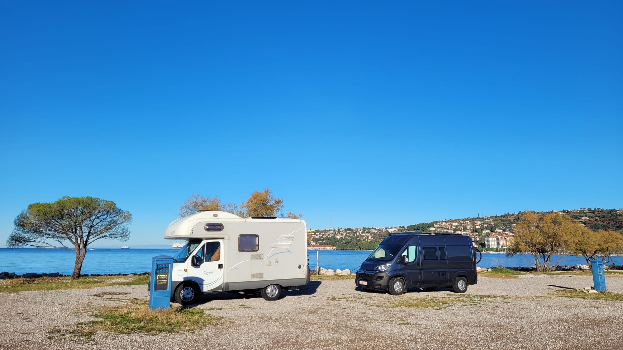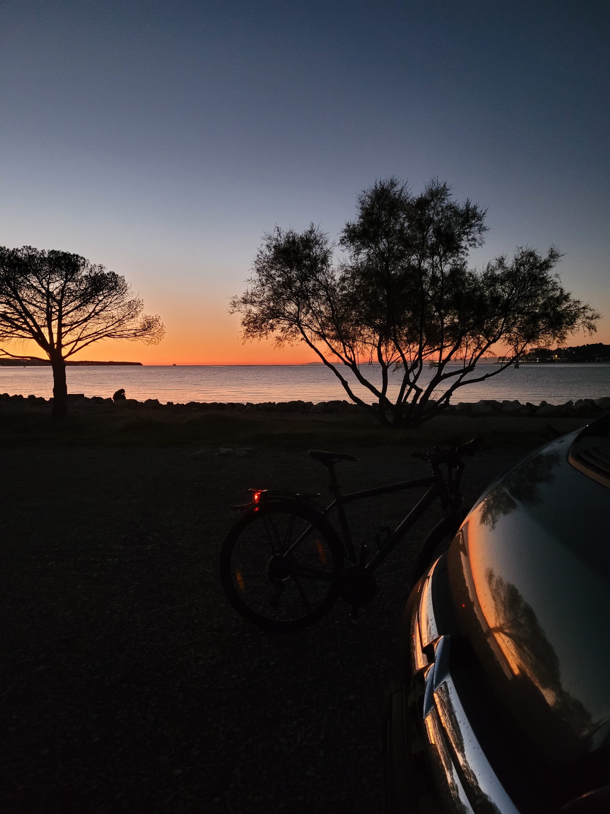 ...doch dann geht's um 21:30 weiter in den Süden. Andreas holt mich mit Luigi direkt beim Urdl Wirt ab und wir folgen Lena, Matthias und Charly 🐌 nach Portorož. Die drei kommen dort an als wir losfahren und melden, dass sie alleine in der Marina stehen.
