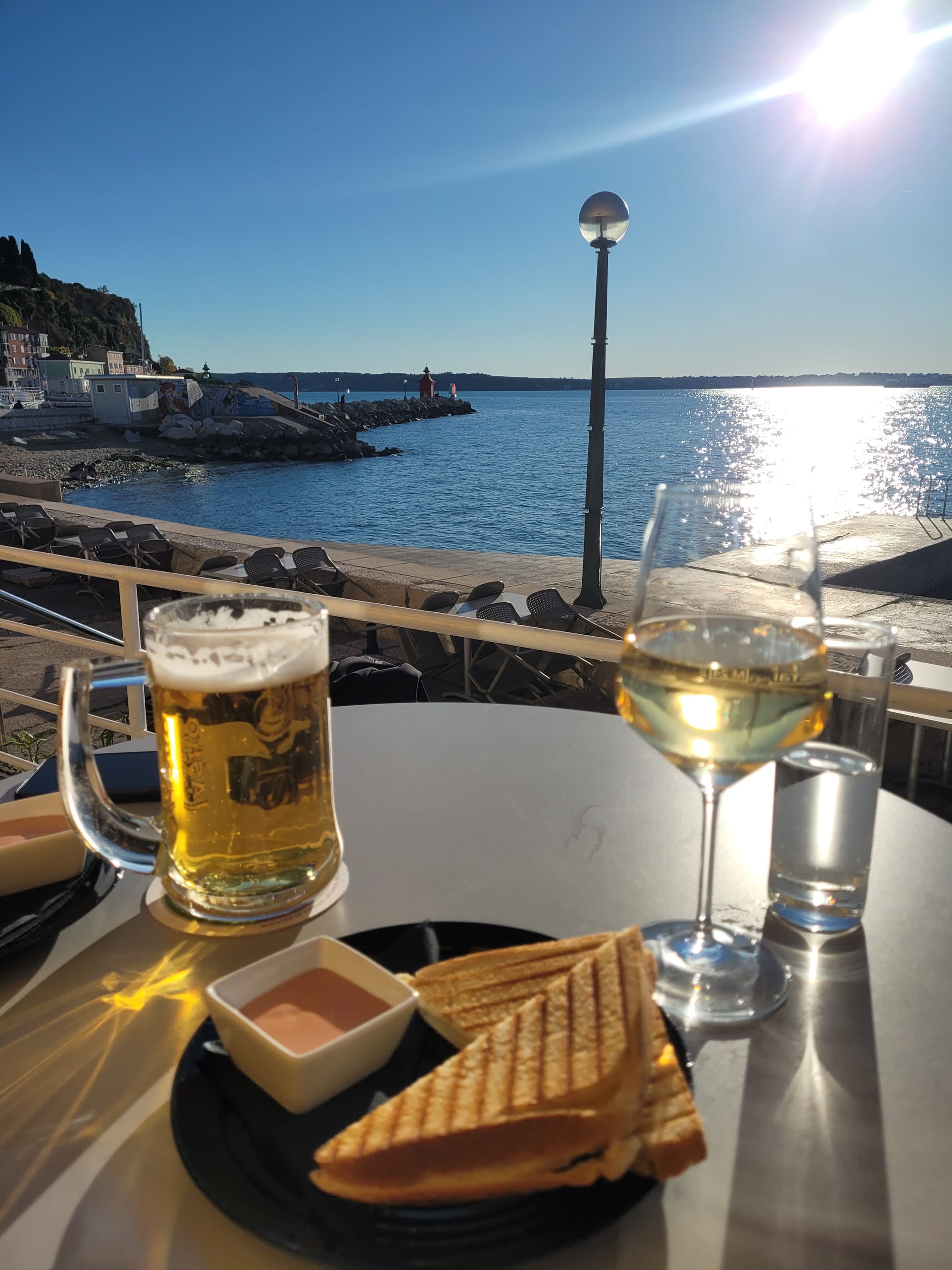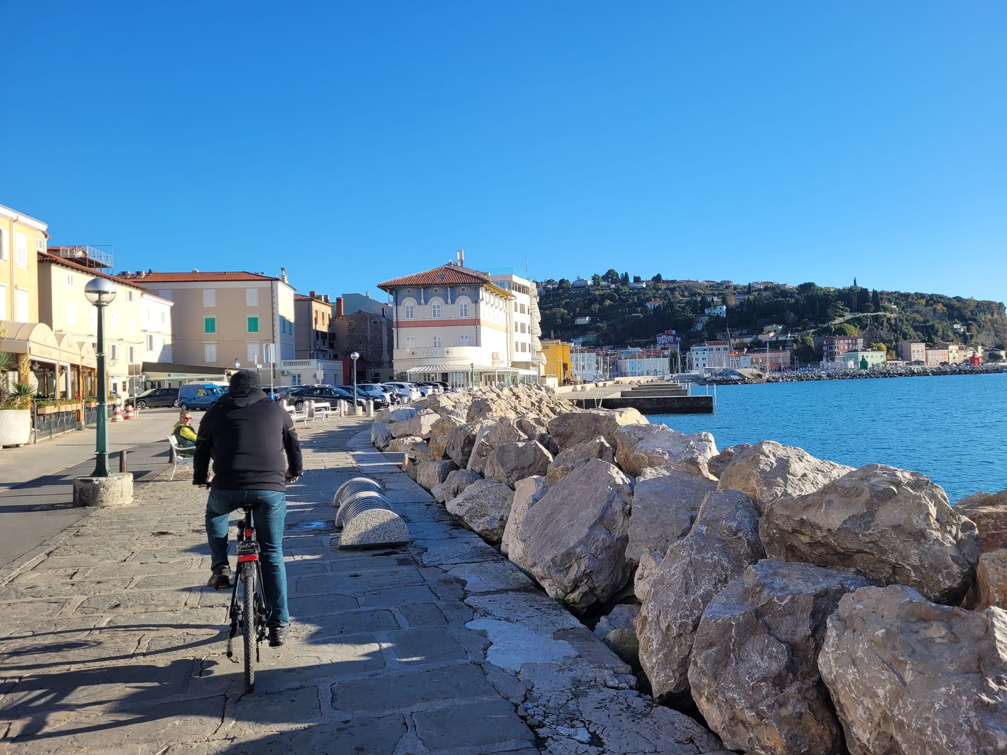 Am frühen Nachmittag radeln Andreas und ich nach Piran um die Öffnungszeiten der Lokale, für ein Essen morgen, zu erkunden.