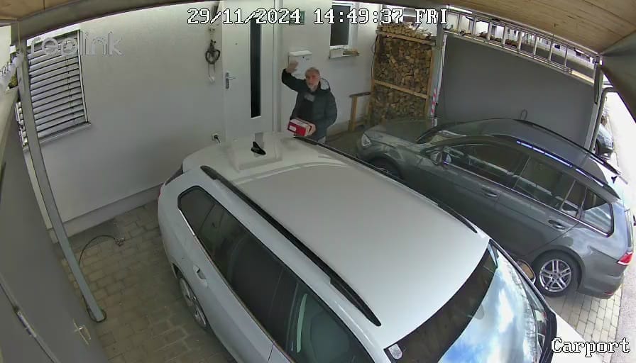 Günther rettet Luigis neuen Ladebooster, den der Postbote auf die Stiege gelegt hat,...