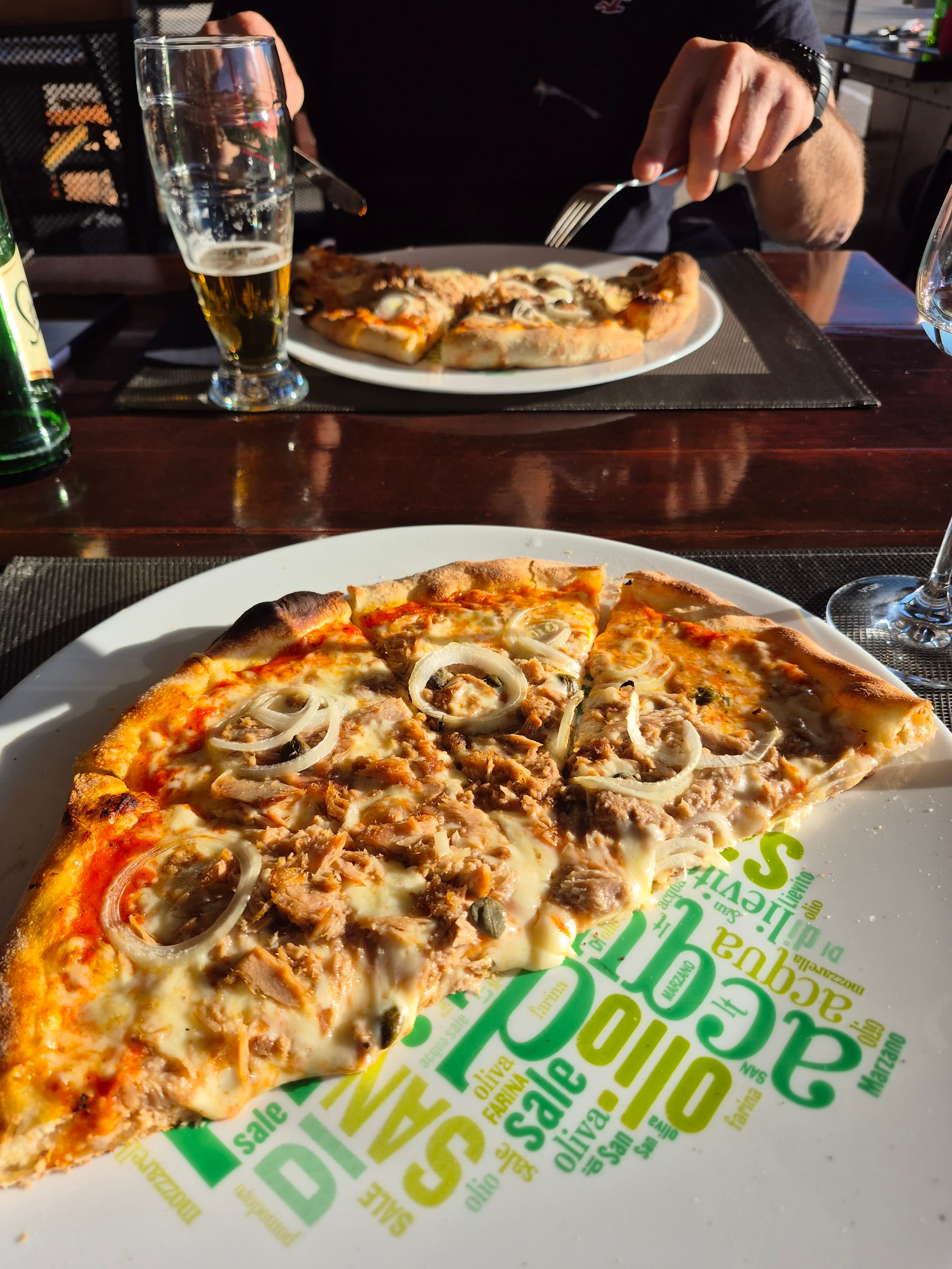 Dort teilen wir uns auch eine Pizza...