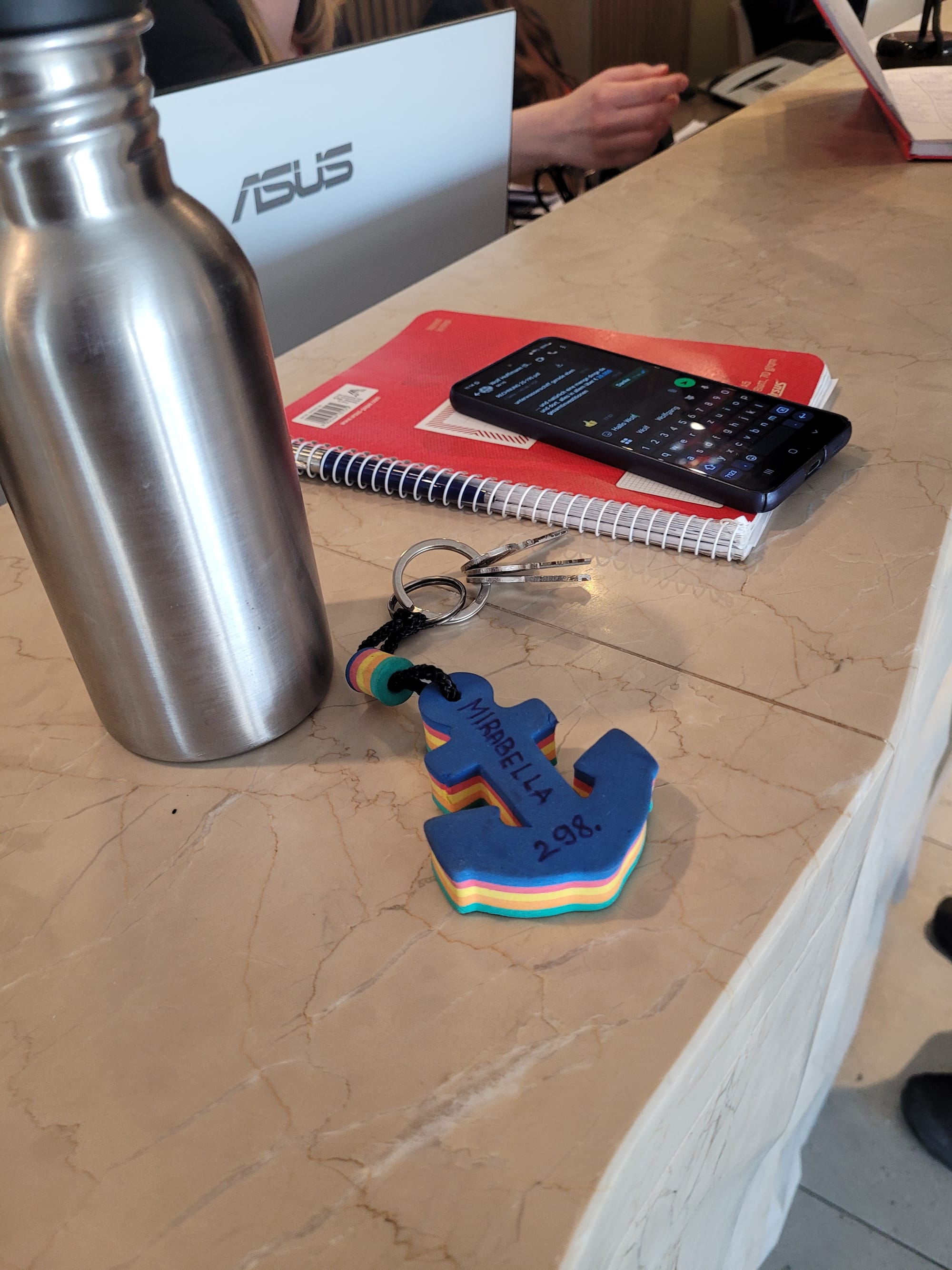 Voller Vorfreude begeben wir uns zur Besichtigung der Sunbeam 30. Den Schlüssel bekommen wir bei der Rezeption.