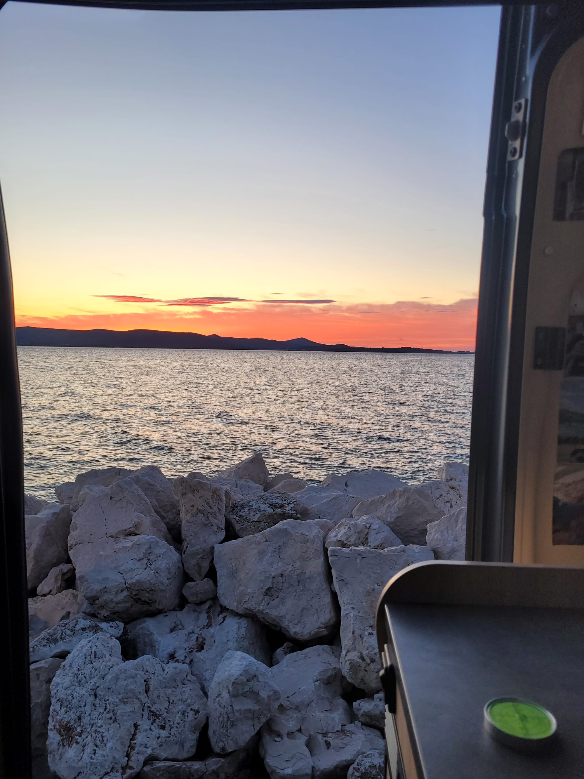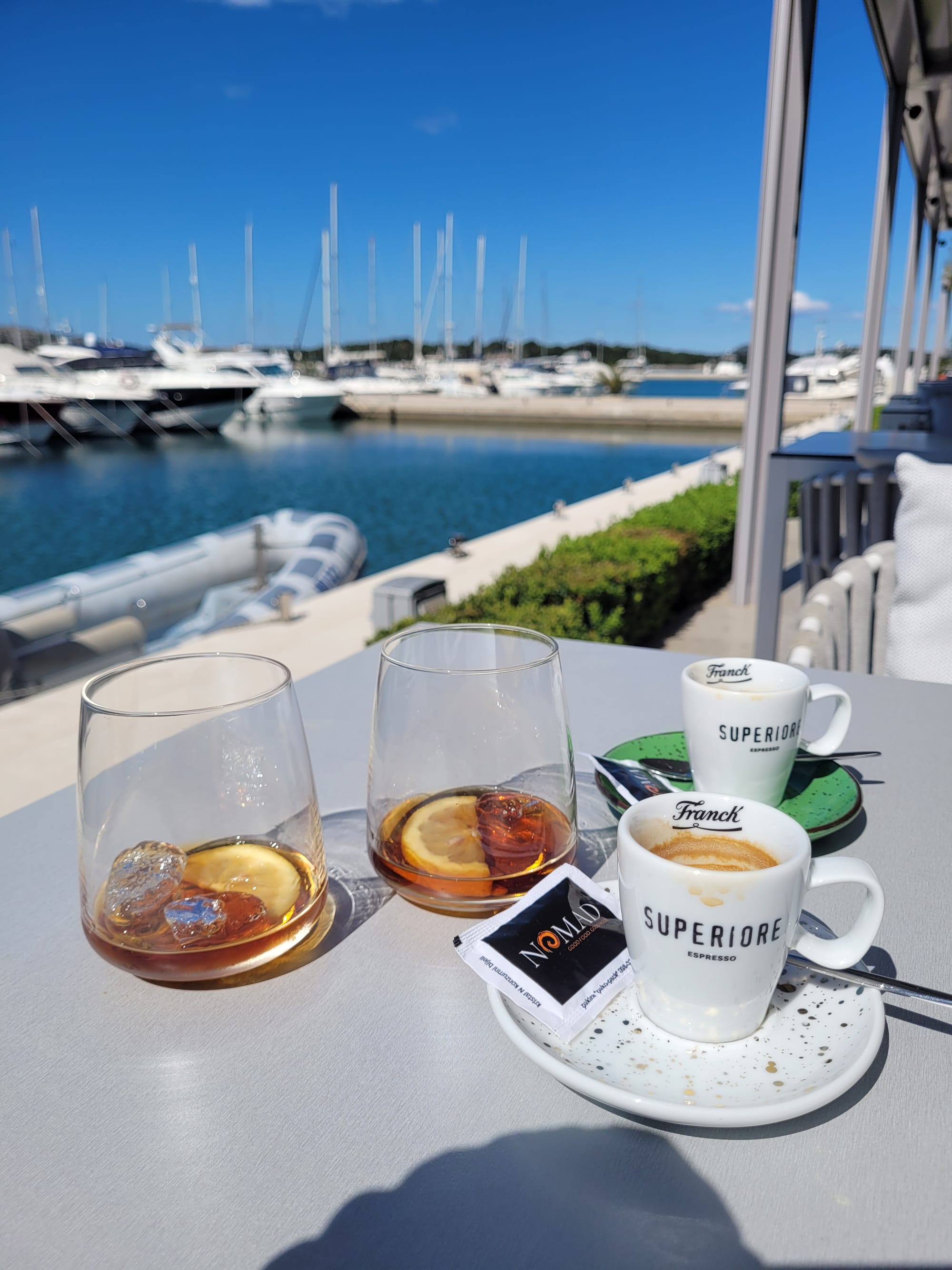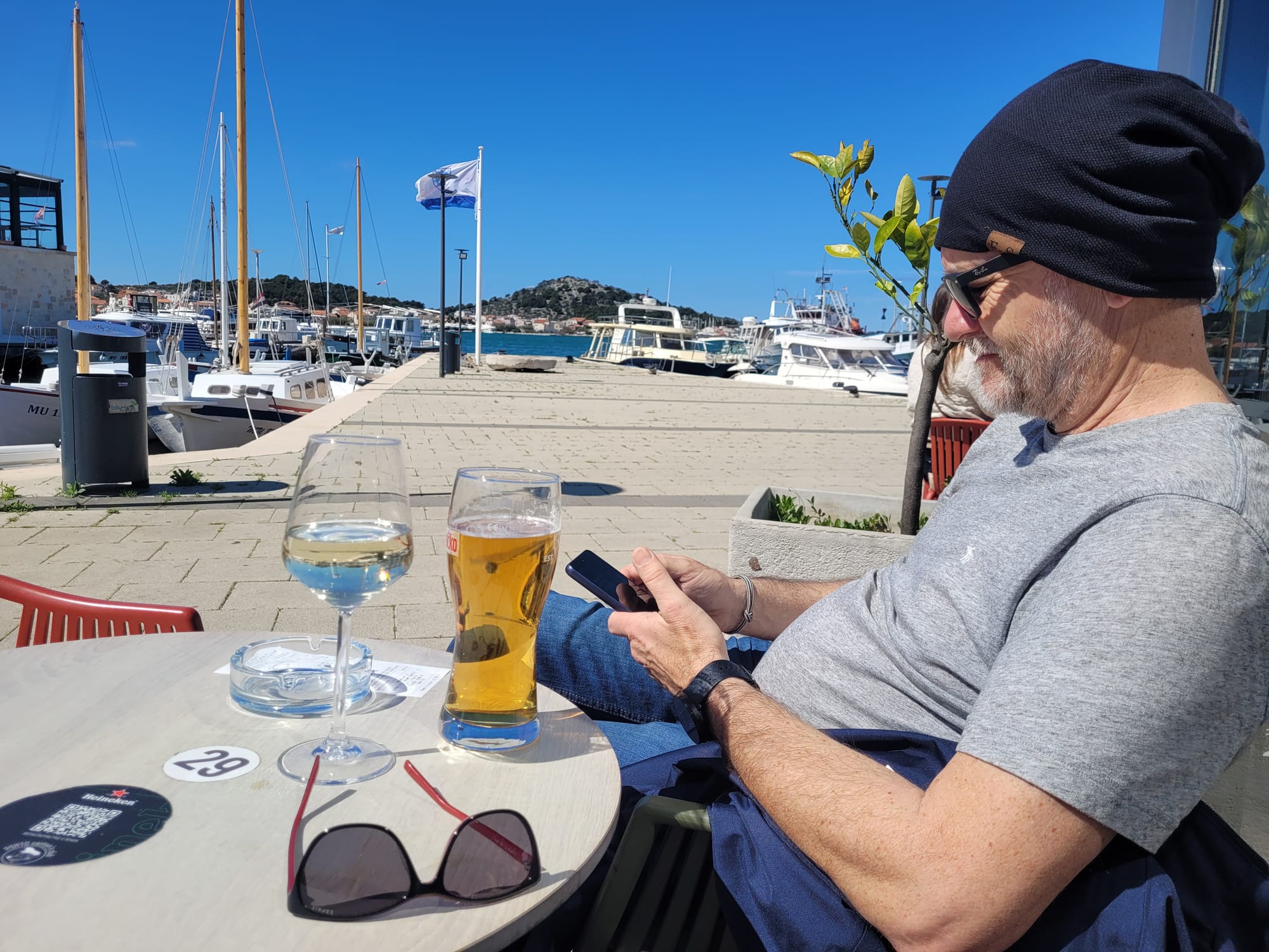Kurz darauf kommen die Schiffsnachbarn an unseren Nebentisch und wir tratschen eine zeitlang über Schiffe, Kroatien, Camper und Ausstiegspläne. Am Ende werden wir für den Abend auf ihr Schiff eingeladen.