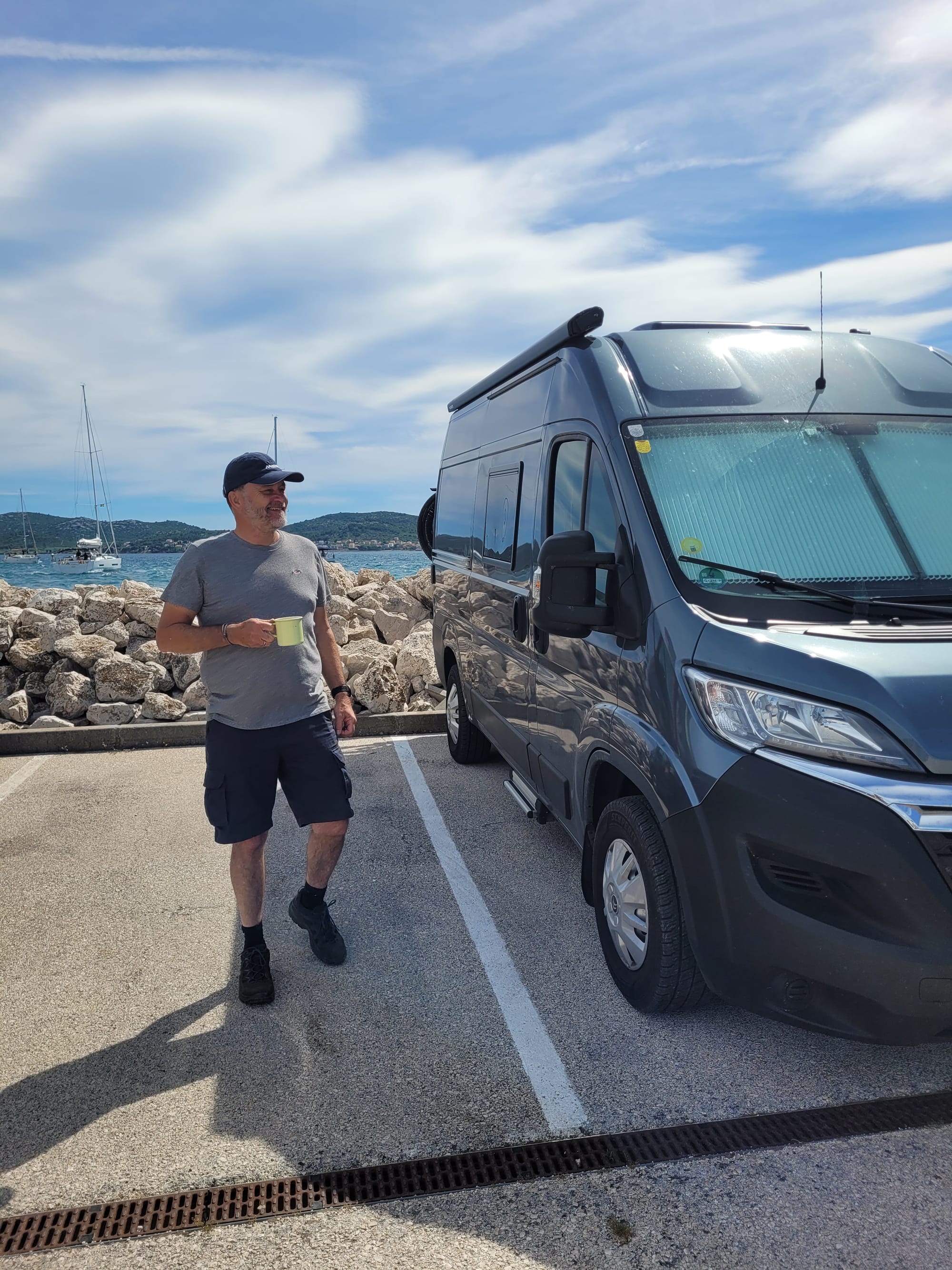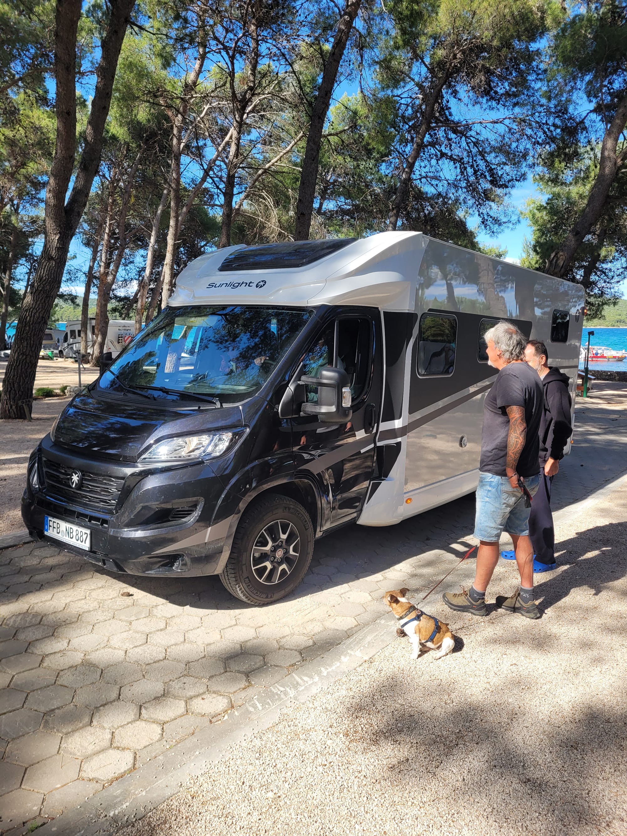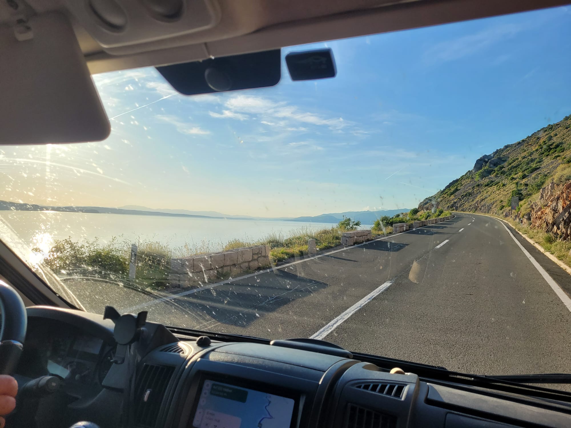 Wir ziehen weiter. Es wird ein Livi-Zeitfenster nach dem Frühstück abgewartet und dann starten Wolfi und Sabrina sofort los. Sie fahren vor, weiter Richtung Norden, zu einem Campingplatz am Festland an der Küste, auf der Höhe von Baška.