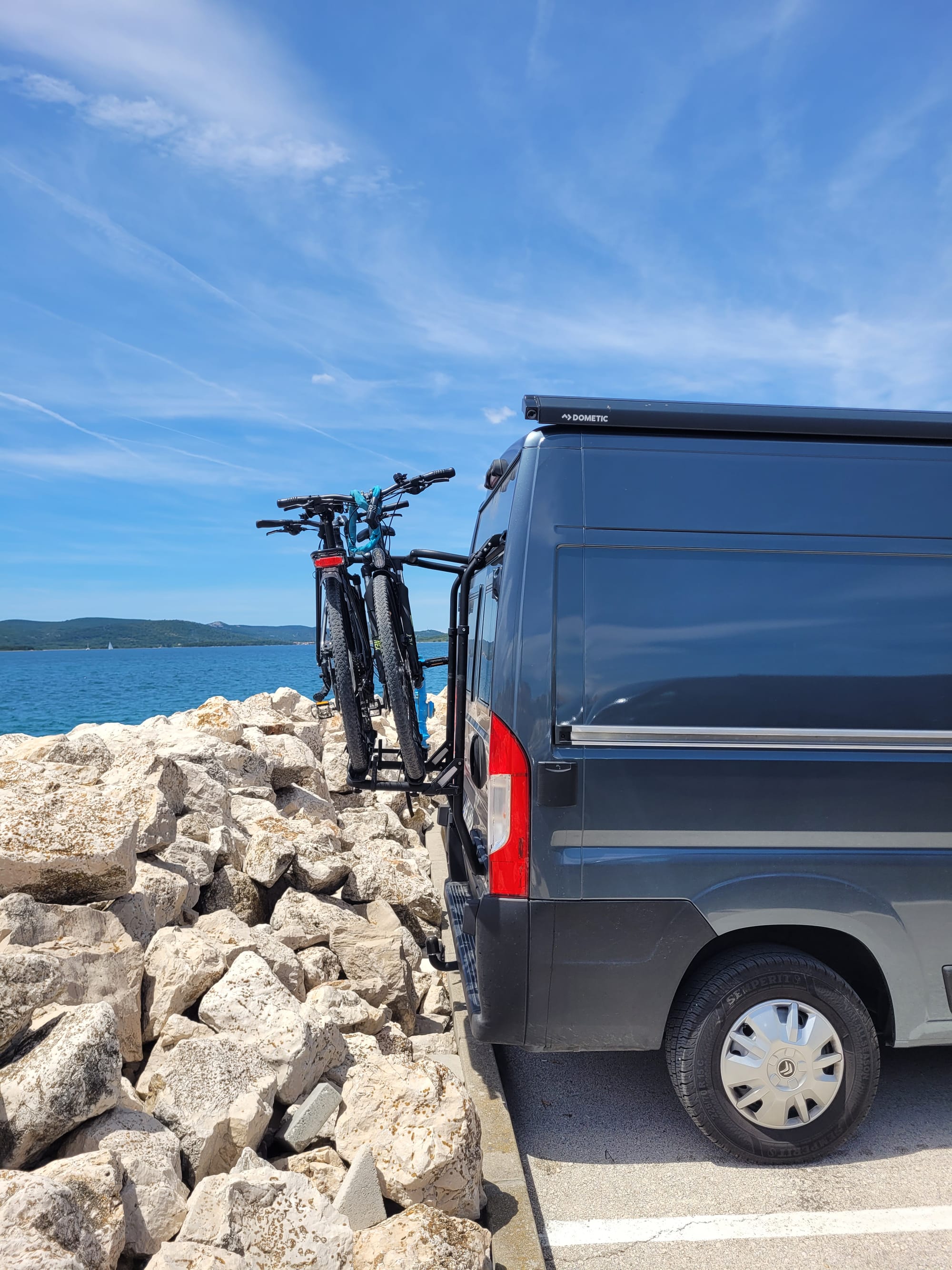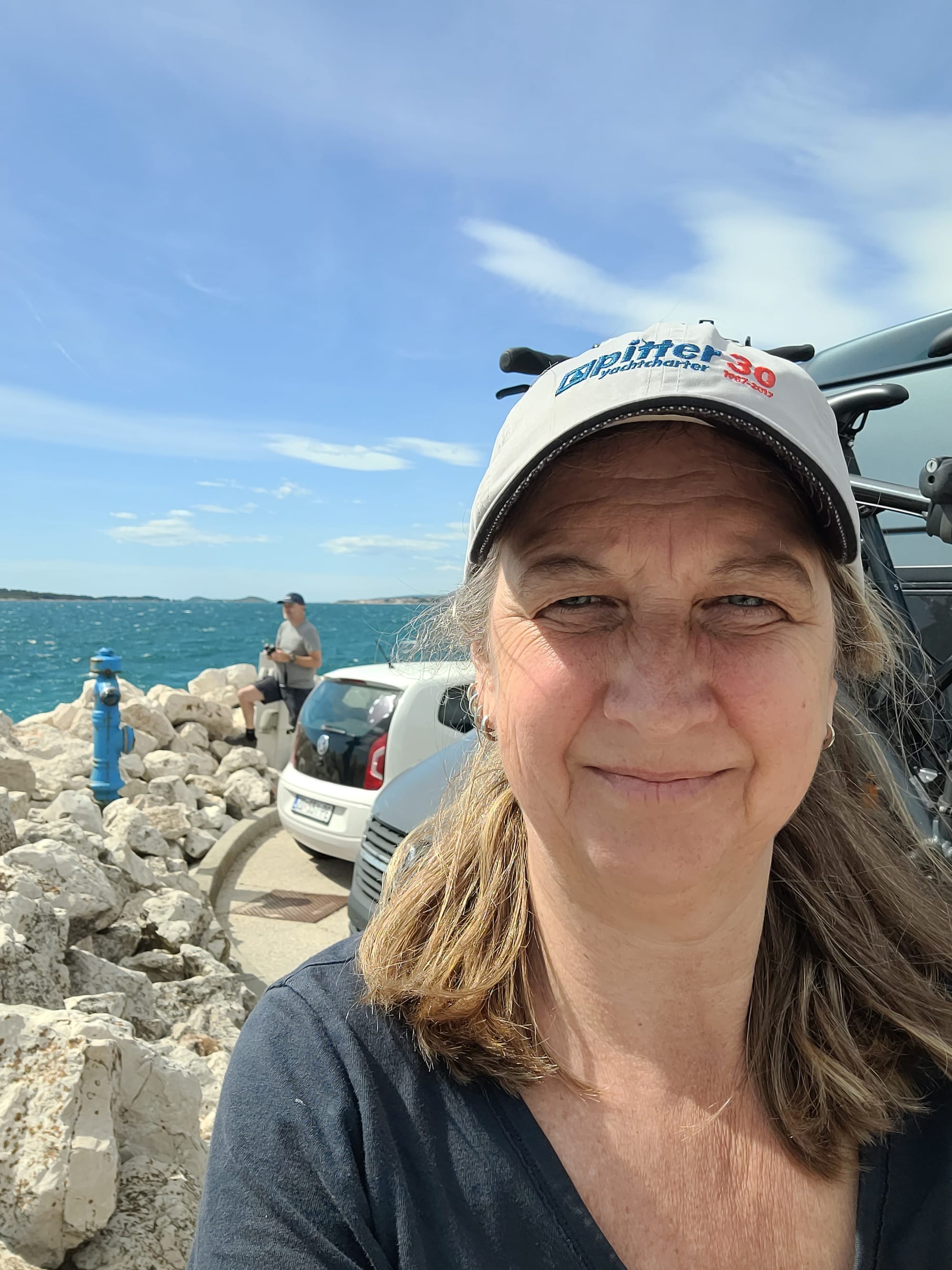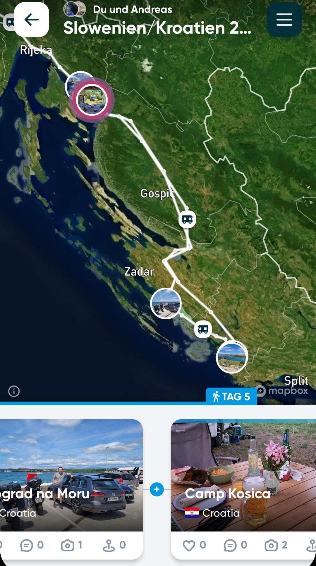 Wir ziehen weiter. Es wird ein Livi-Zeitfenster nach dem Frühstück abgewartet und dann starten Wolfi und Sabrina sofort los. Sie fahren vor, weiter Richtung Norden, zu einem Campingplatz am Festland an der Küste, auf der Höhe von Baška.