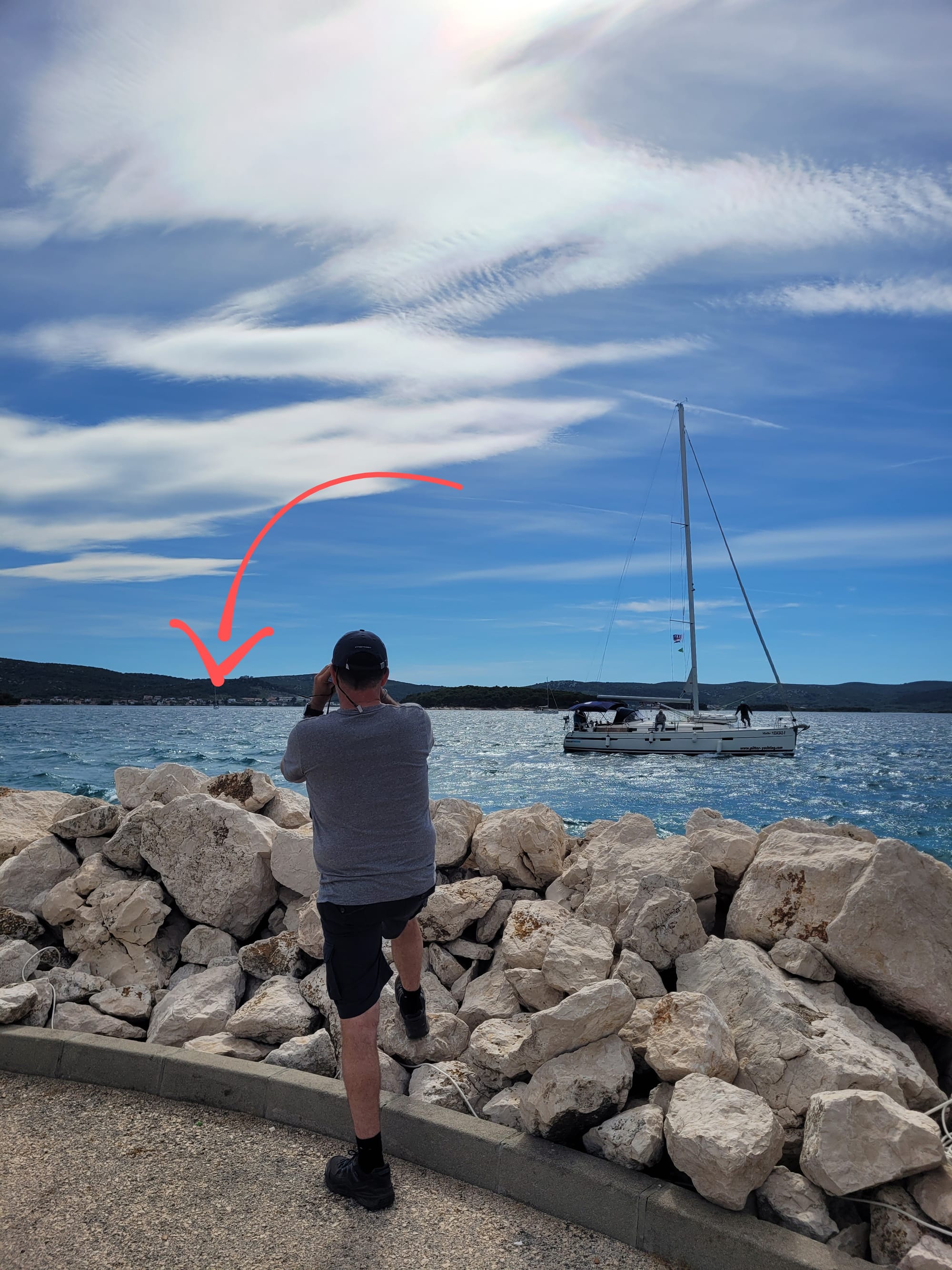 Und plötzlich entdeckt Andreas das Boot von Matthias. Sie kommen dahergesegelt und machen sich dann bereit zum Anlegen.
