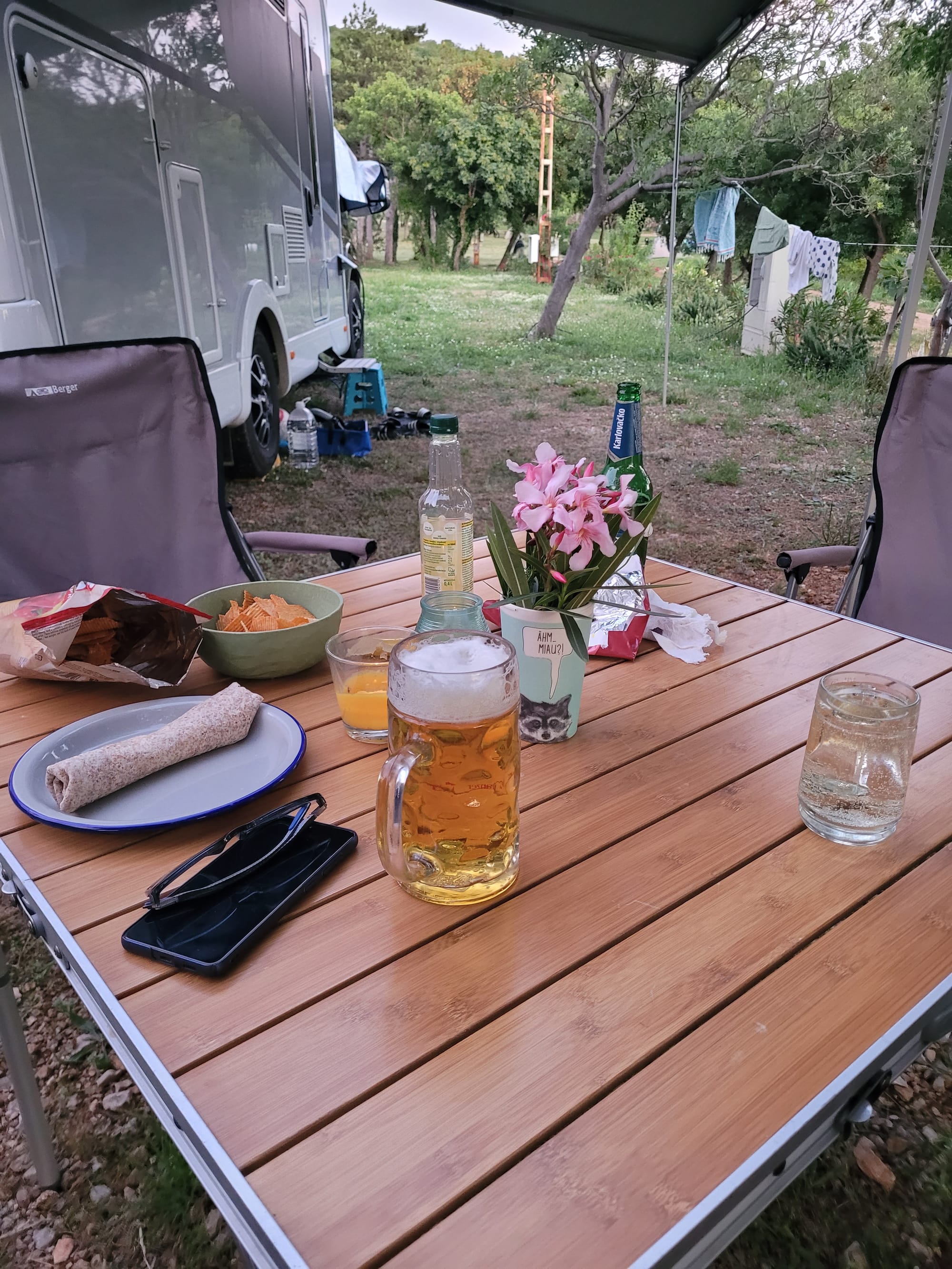 Und den Abend verbringen wir wieder zu viert vor den Campern.
