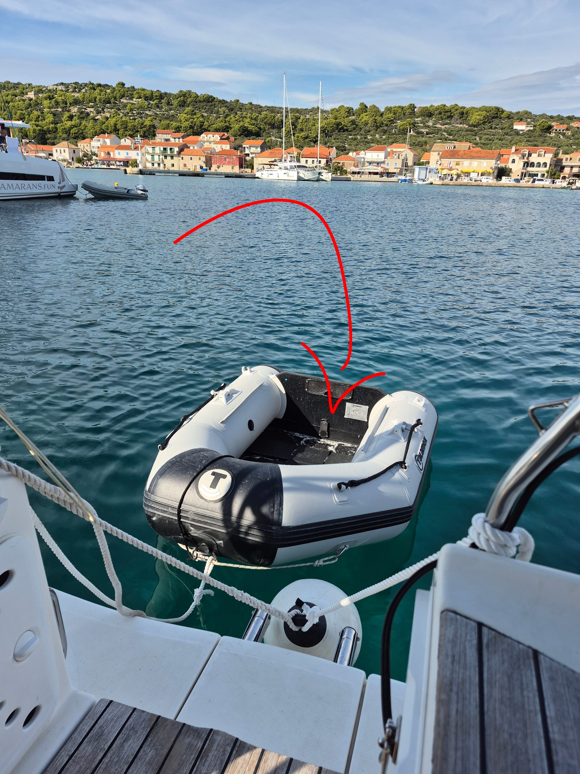 Bei Sonnenuntergang fahren wir mit unserem Dingi zurück...