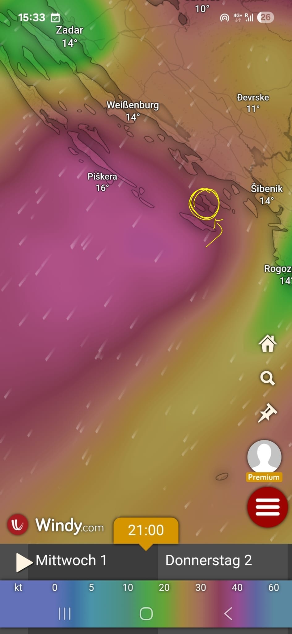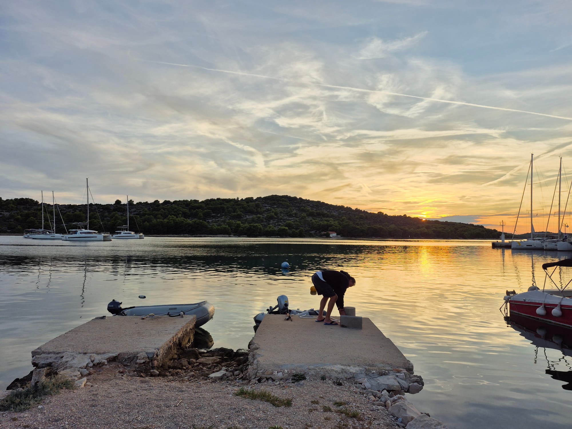 Die Sonne scheint und jetzt ist es wieder total heiß. Eigentlich doch schade bei dem Wetter in der Marina zu liegen. Und so entscheiden wir uns wieder um und ändern den Kurs. Wir wollen zurück nach Kaprije und dort die nächsten Tage abwettern.