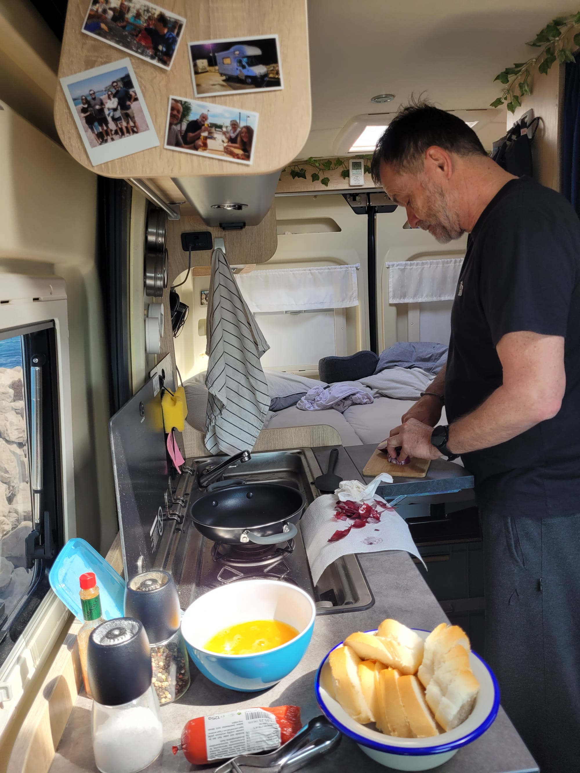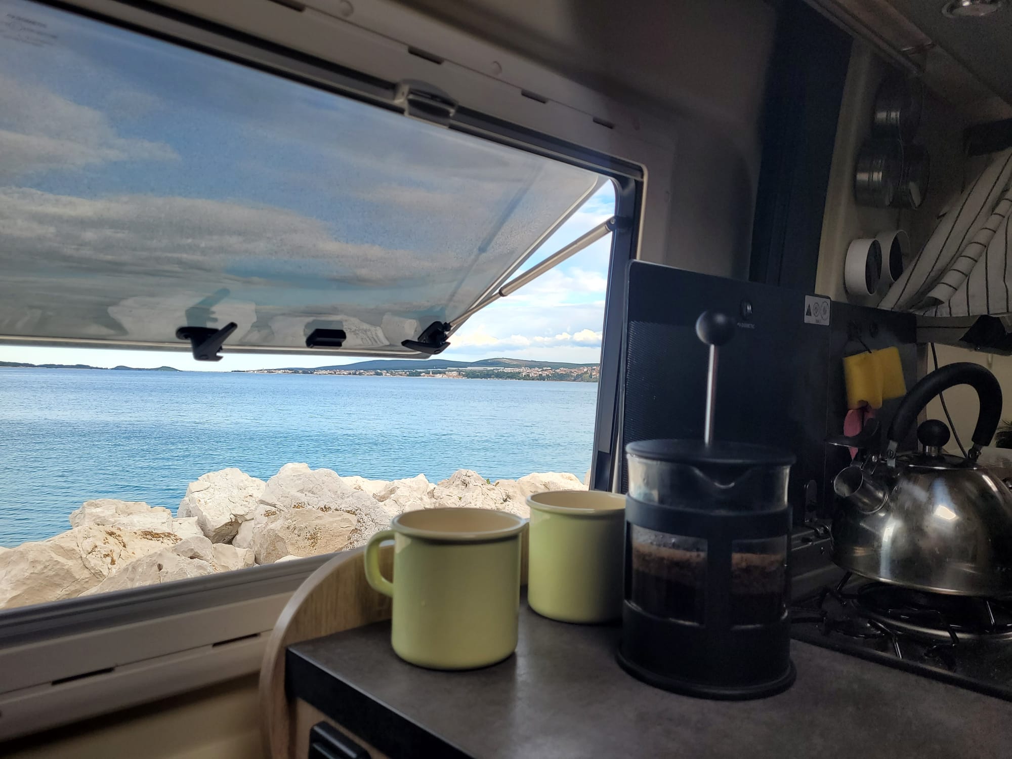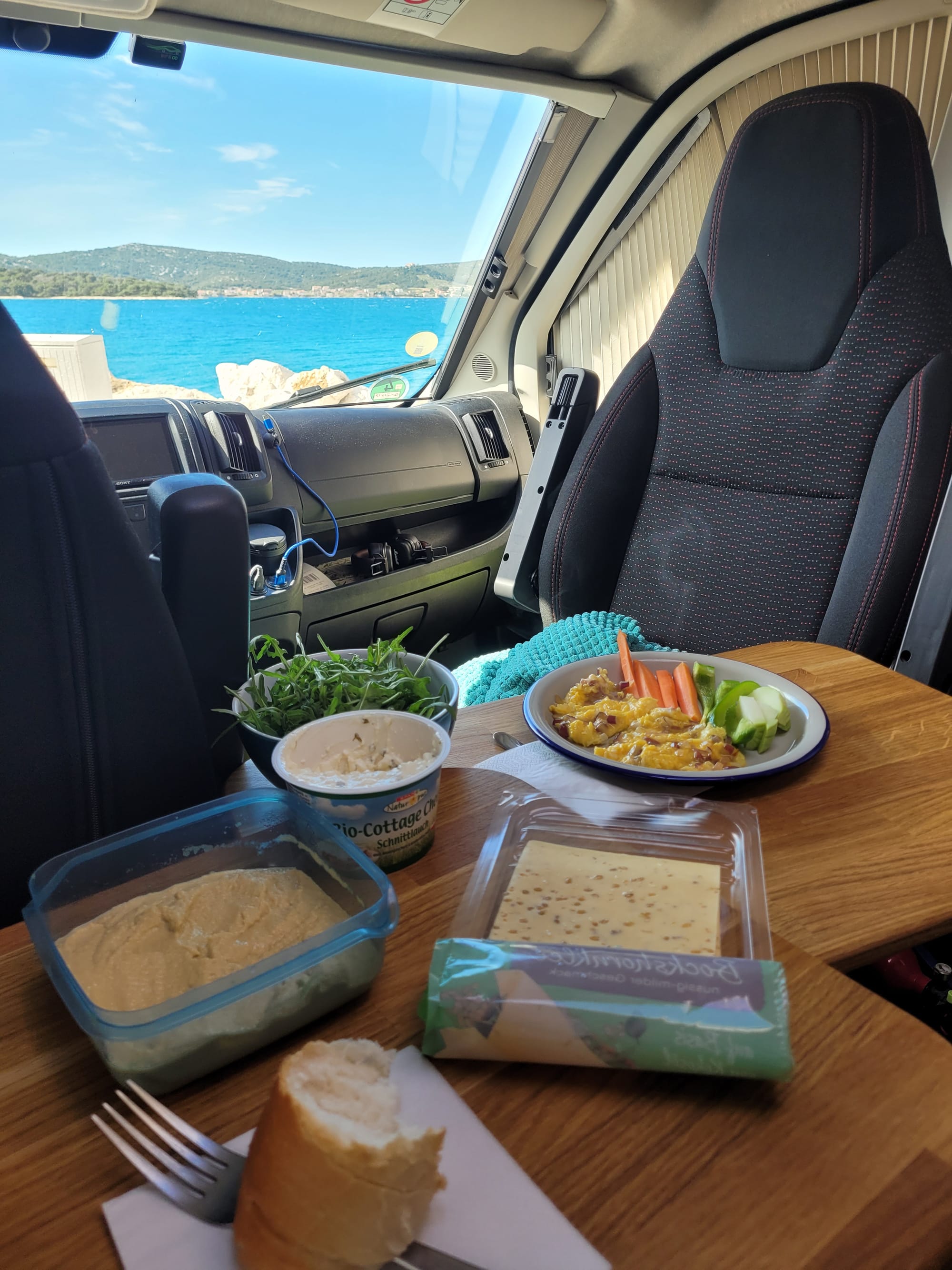 So gemütlich, dass wir uns auch Zeit für Pausen - einmal Kaffee, einmal Abendessen - im Camper nehmen.