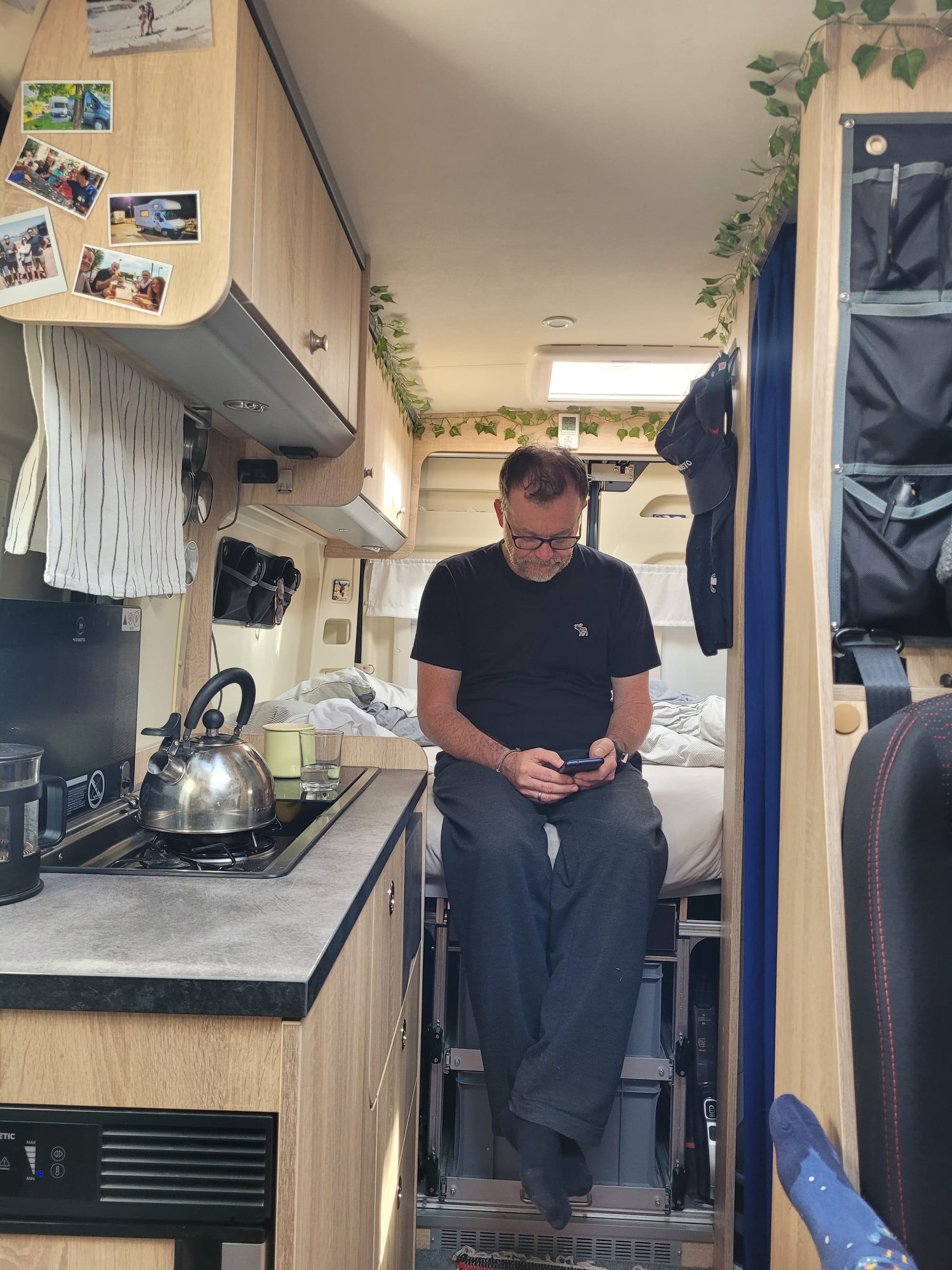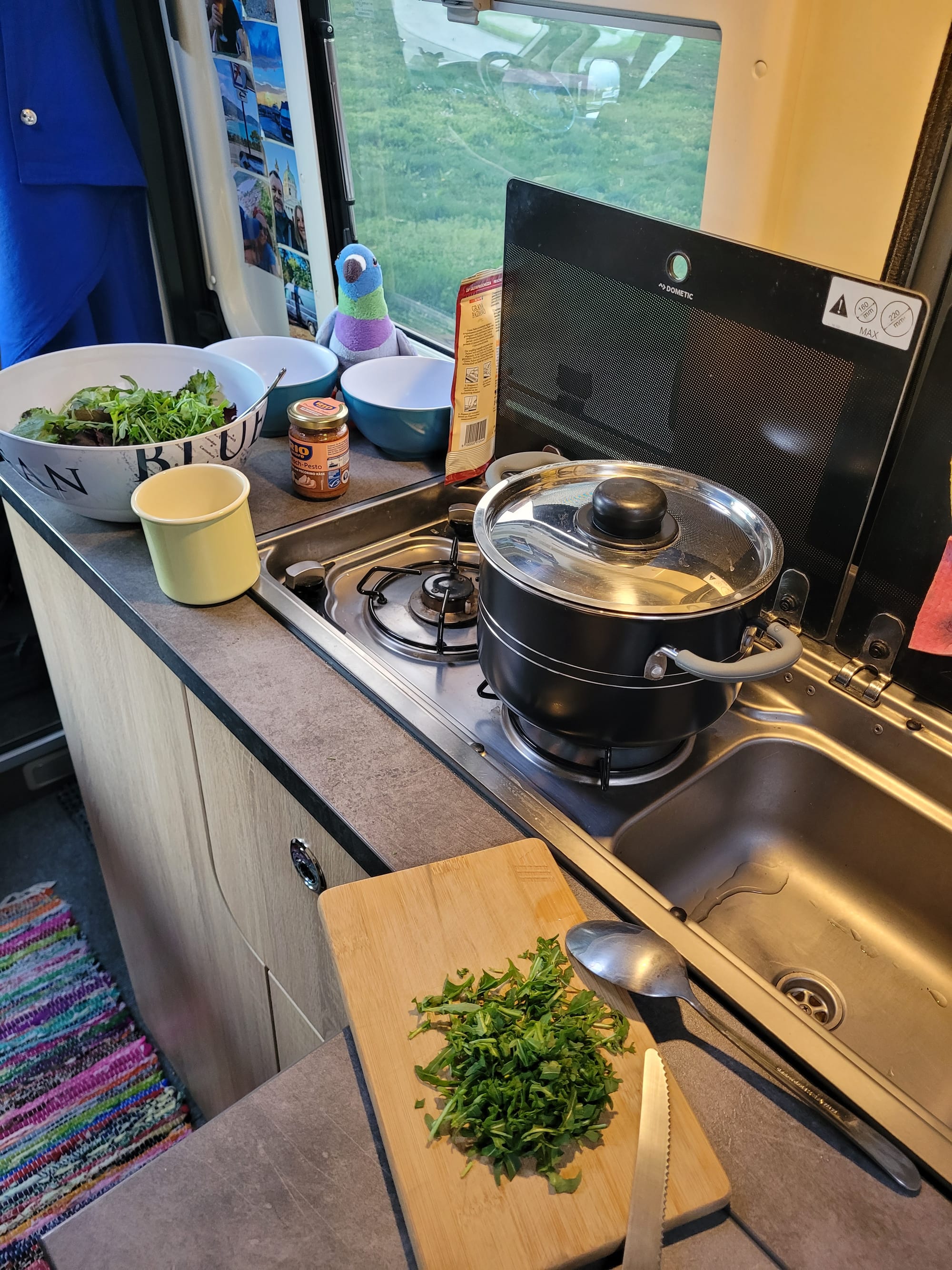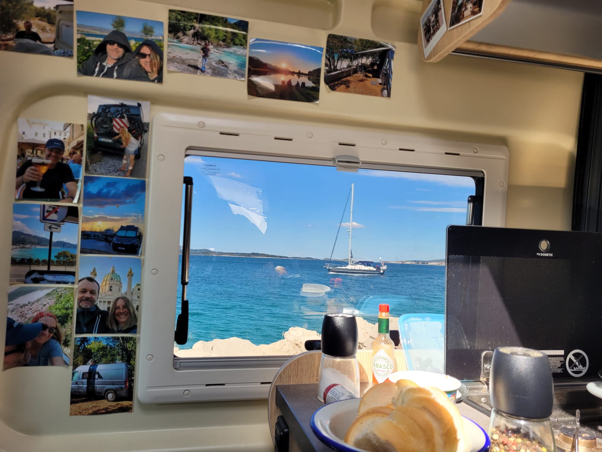 So gemütlich, dass wir uns auch Zeit für Pausen - einmal Kaffee, einmal Abendessen - im Camper nehmen.