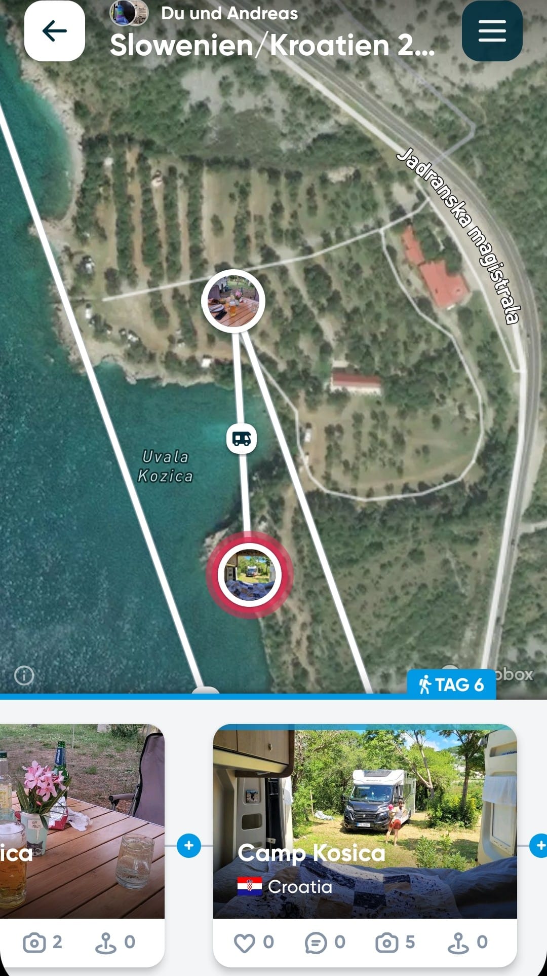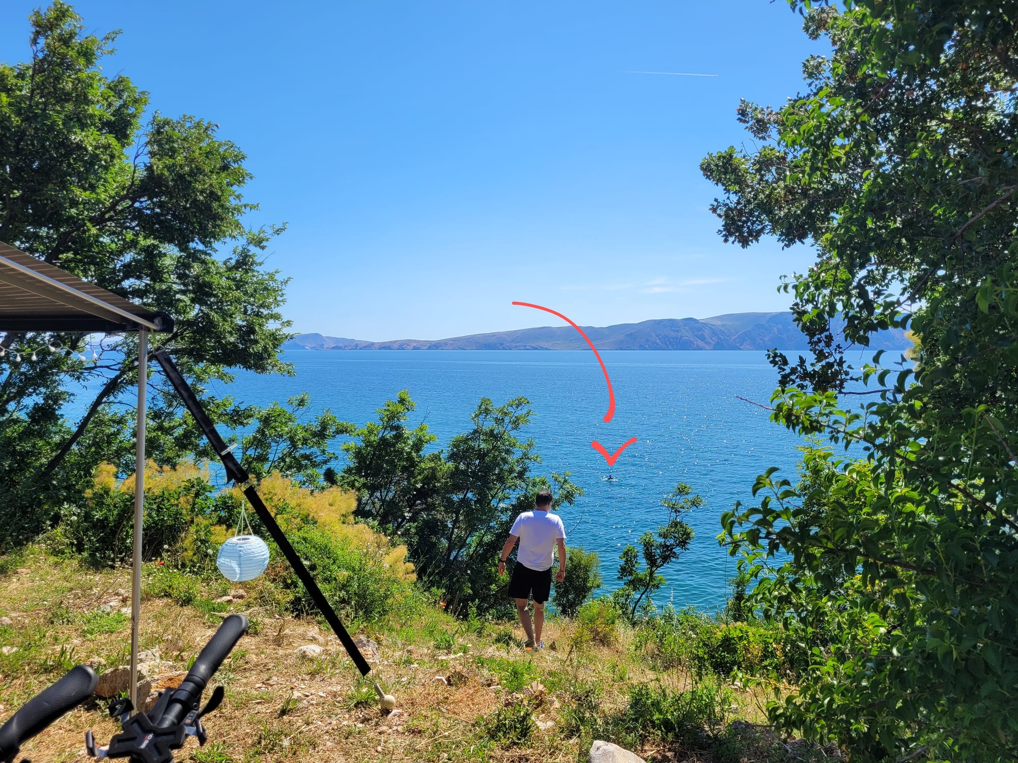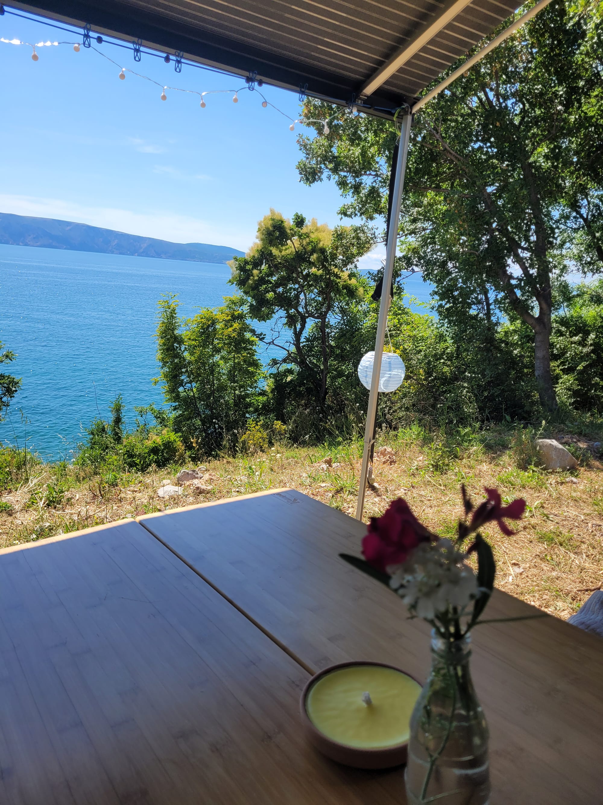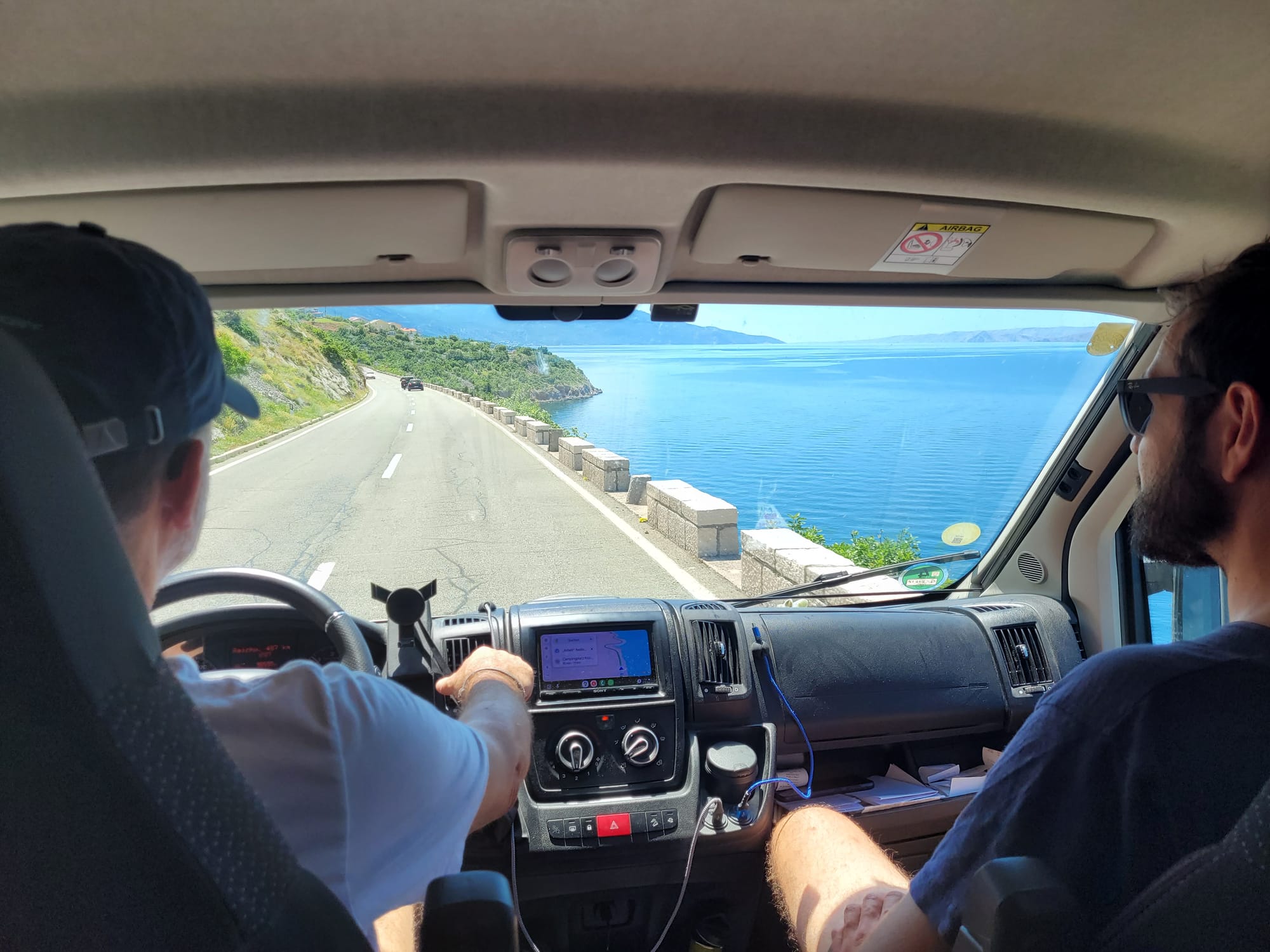 Nach dem Duschen kommt allerdings Wolfi zu uns und erzählt uns, dass sie jetzt den idealen Platz gefunden hätten. Hinter der Sanitäranlage geht der Campingplatz nämlich noch weiter und da kann man ganz alleine direkt am Meer stehen.