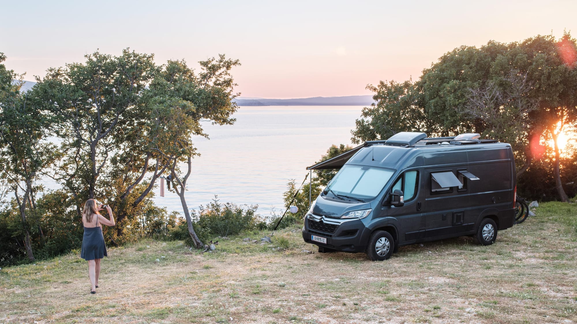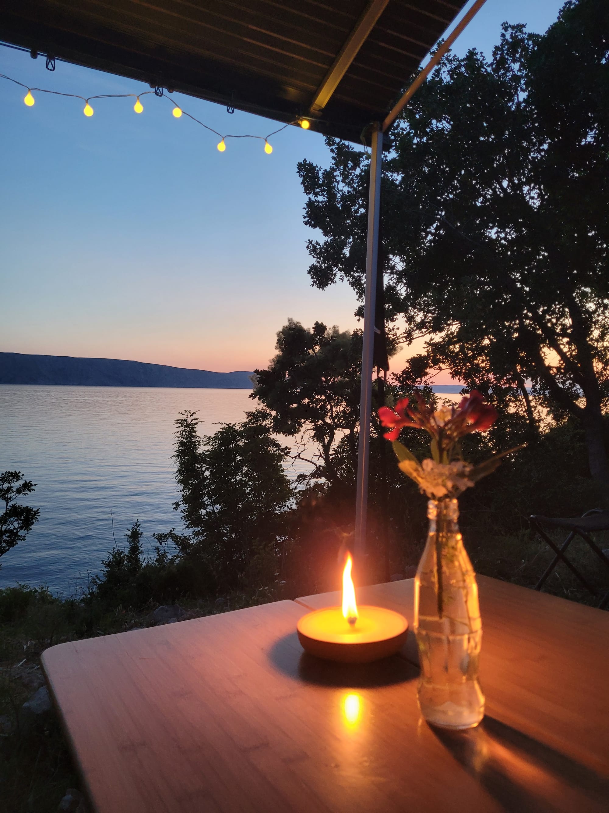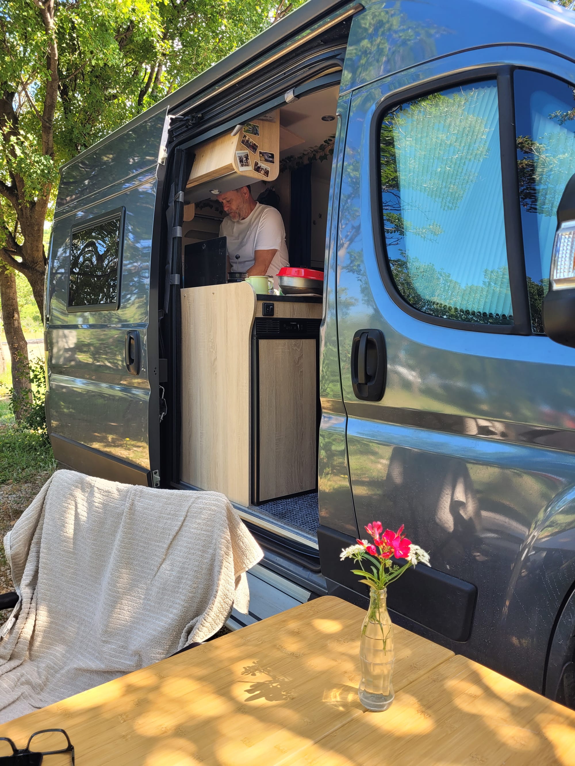 ...und am Abend zu viert vorm Camper zusammensitzen.