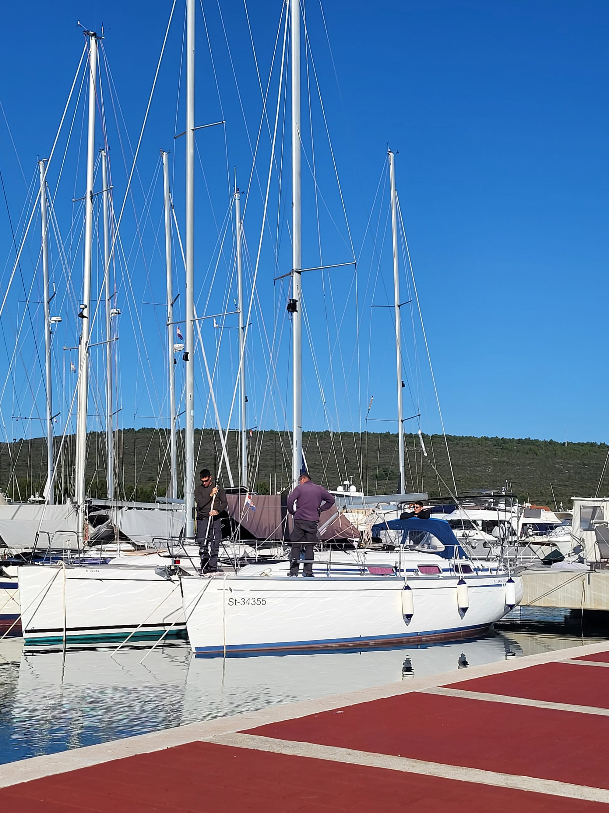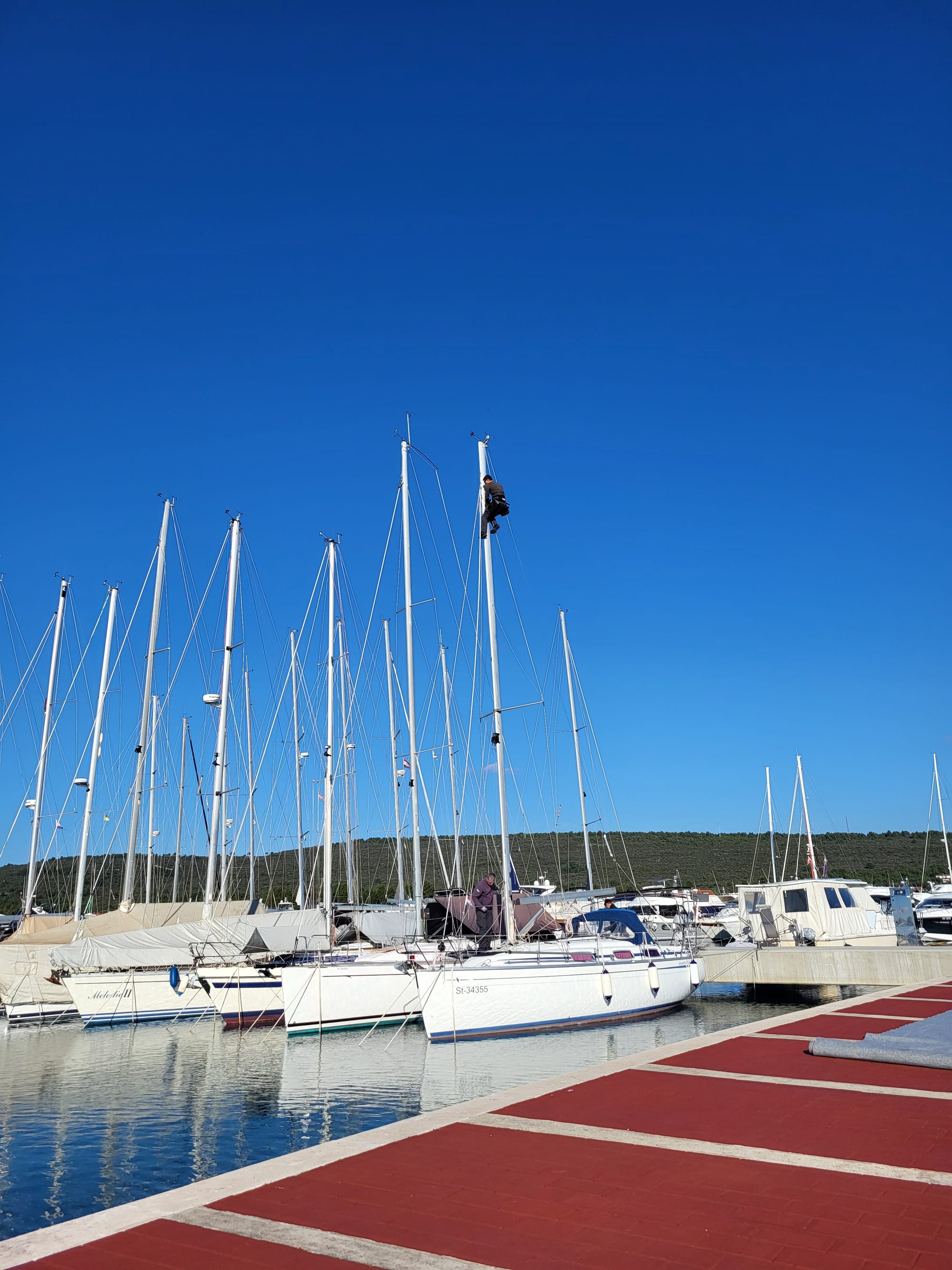 Andreas startet dann schon Anfang der Woche nach Sukošan. Am Montag erreichen mich Fotos von einem spiegelglatten Meer und einem blauen Himmel...