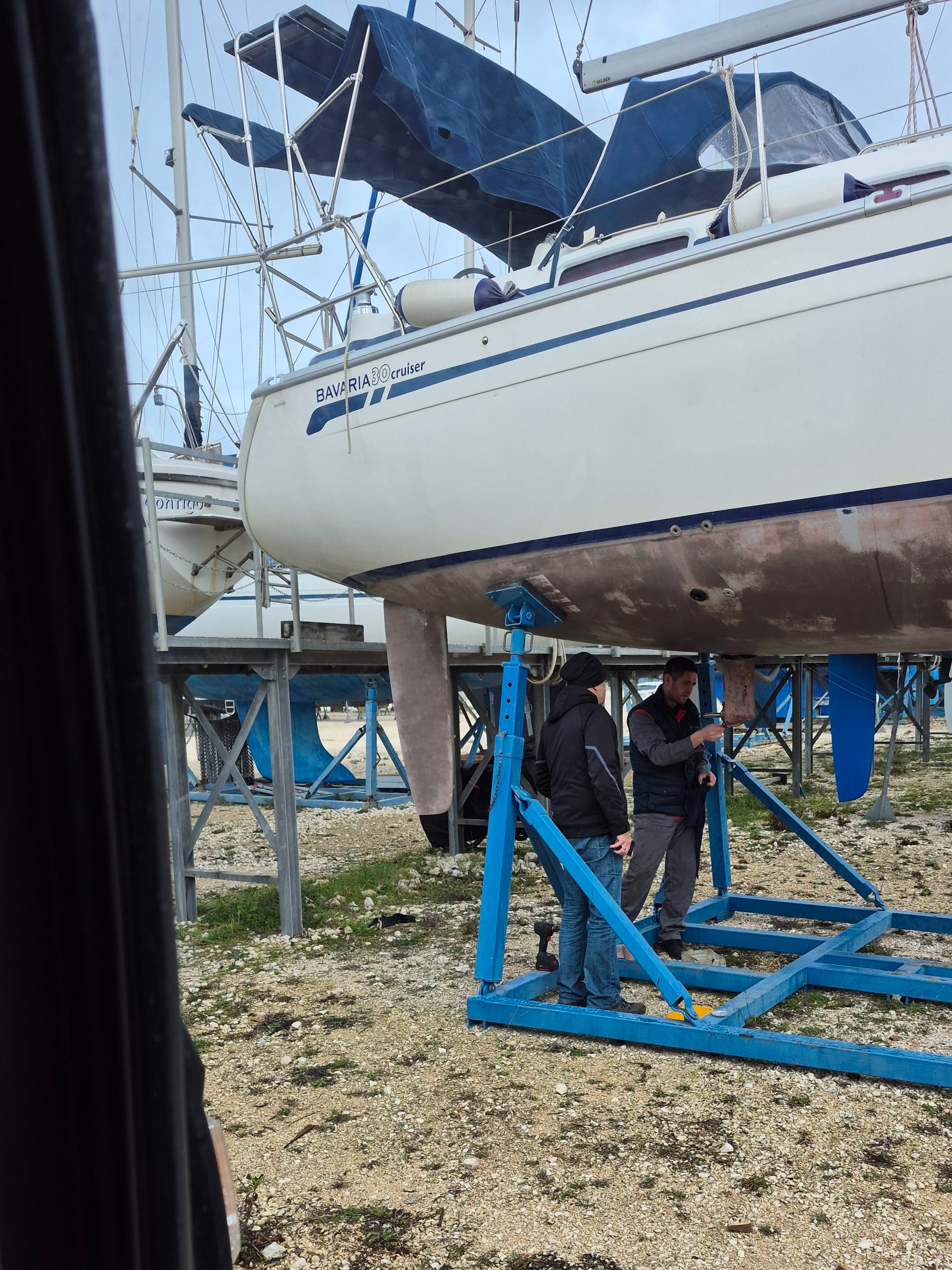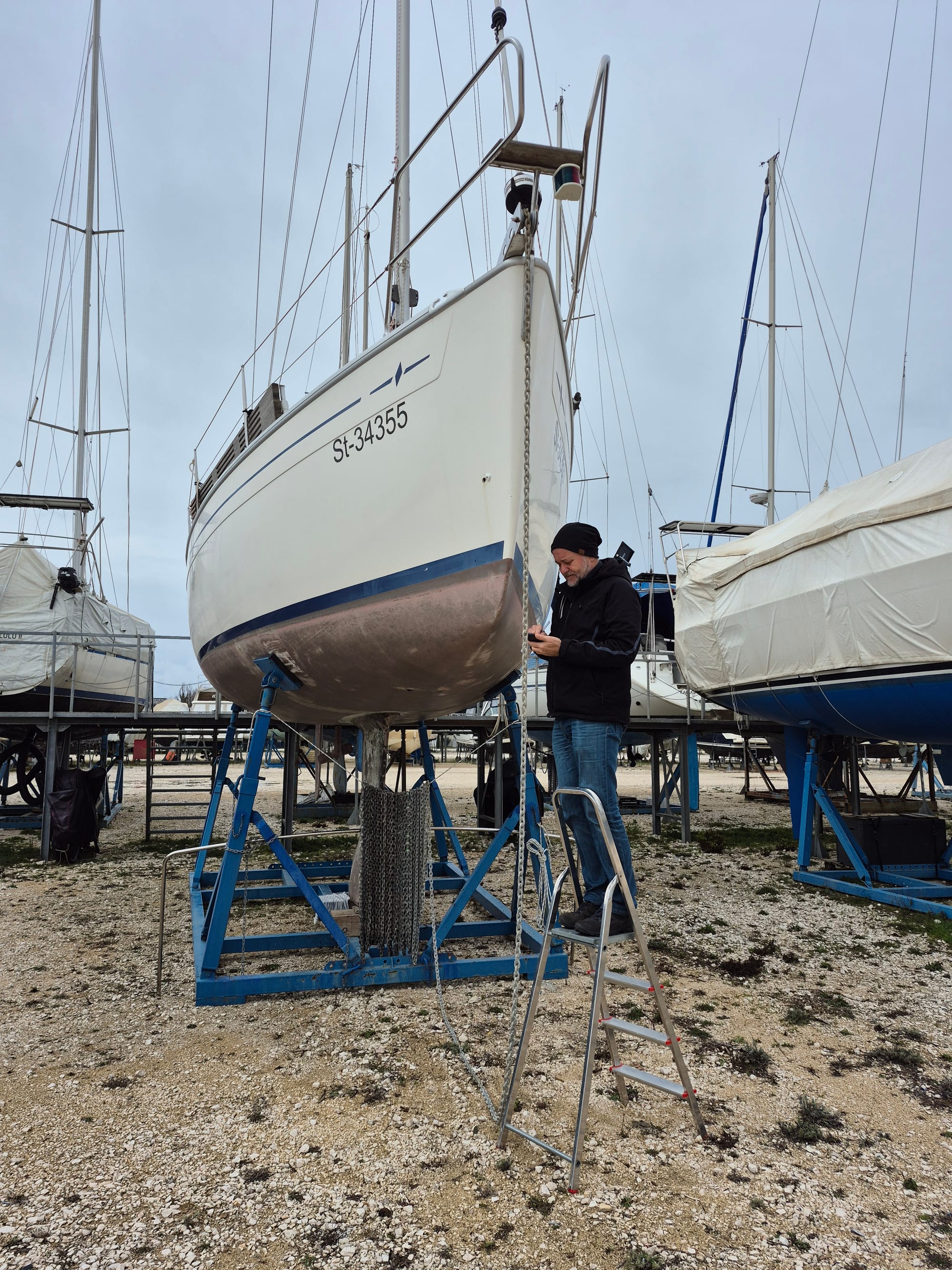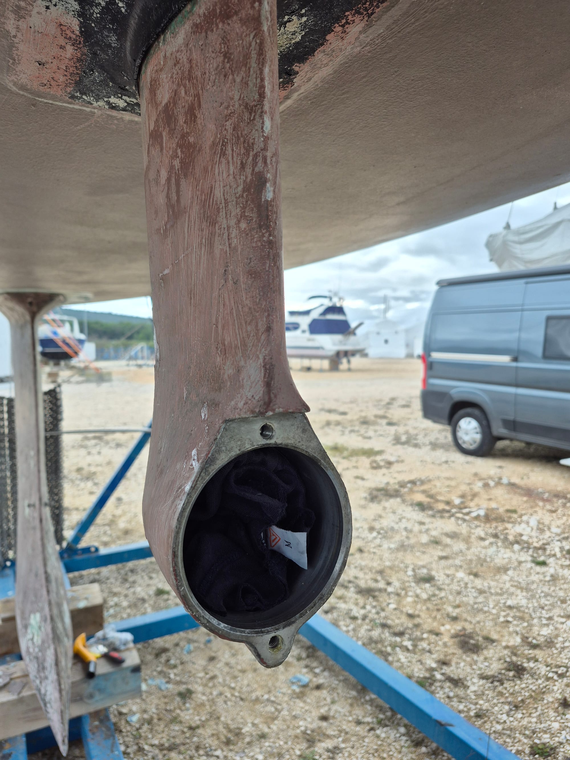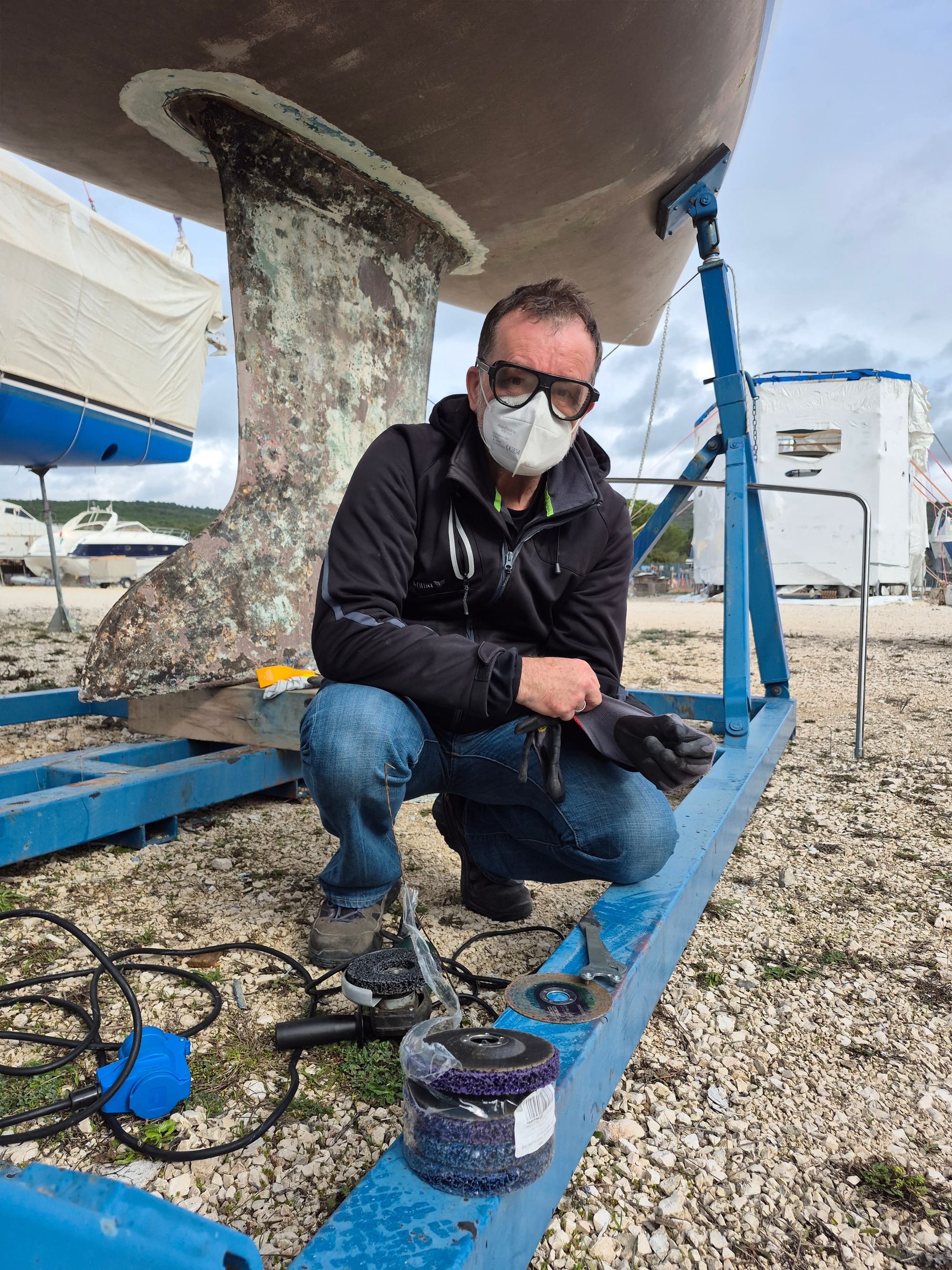 Wieder müssen wir früh aus dem Bett. Die Pavić Arbeiter kommen um den Saildrive einzubauen.
