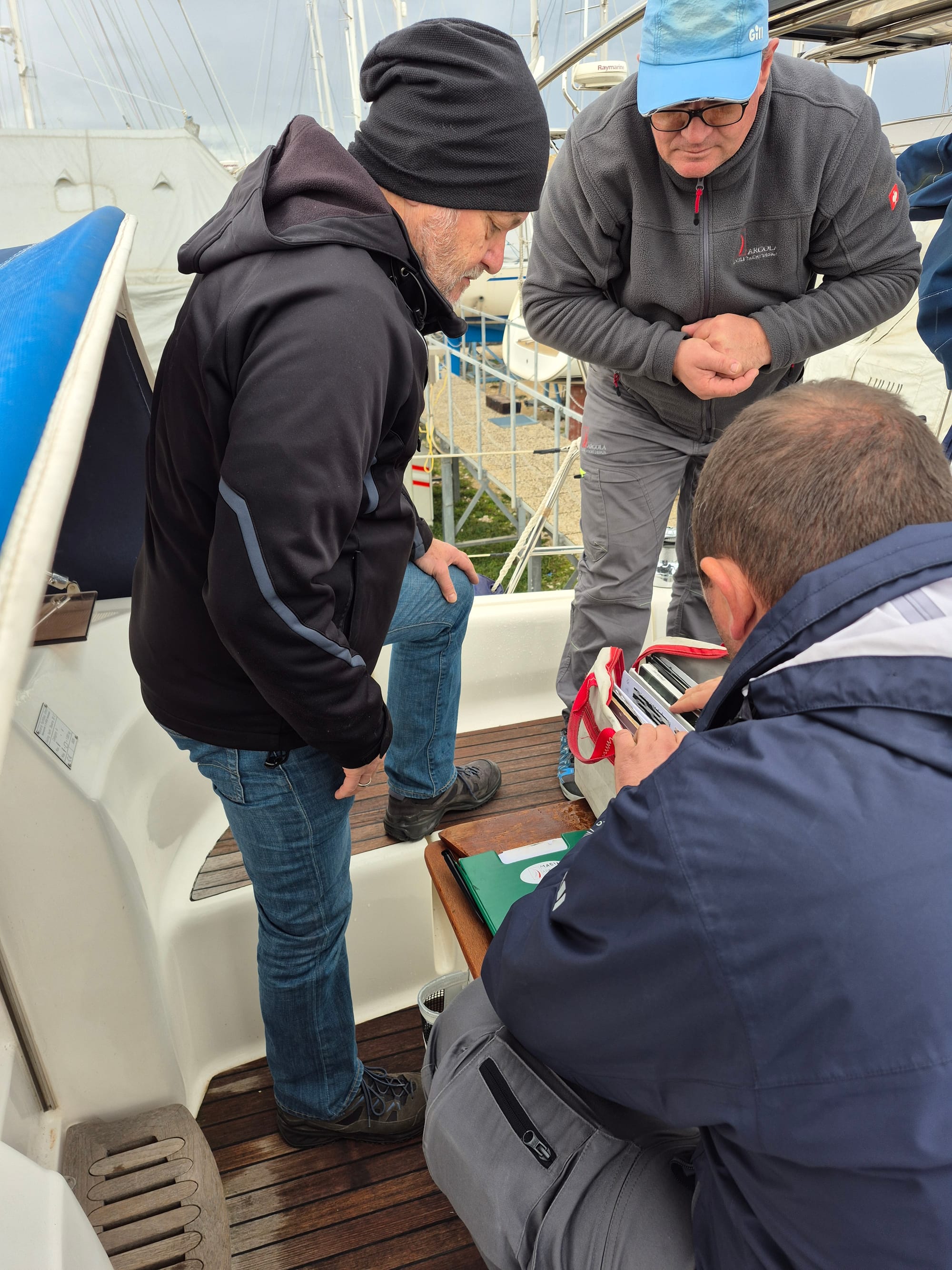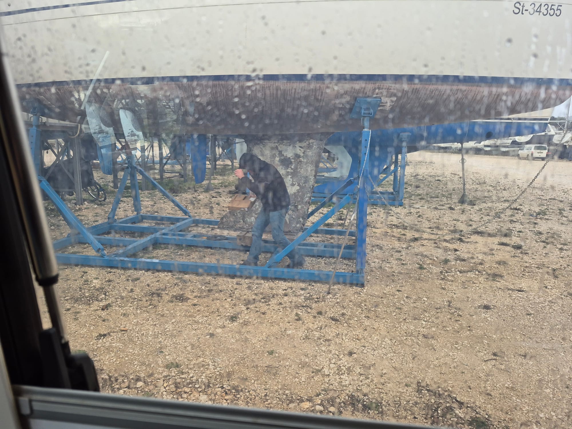 Natürlich alles bei Regen. Kaum fangen wir an das Bimini zu besprechen fängt es an zu nieseln.