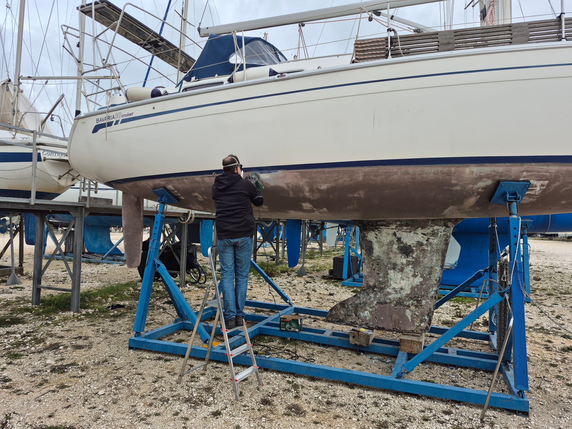 Wir sind wieder alleine. Eigentlich sind wir für diese Woche fertig und haben schon alles für die Heimreise gerichtet. Doch kurz nochmal möchte Andreas den Status vom Unterwasserschiff prüfen um die weiteren Arbeiten nächste Woche zu planen.