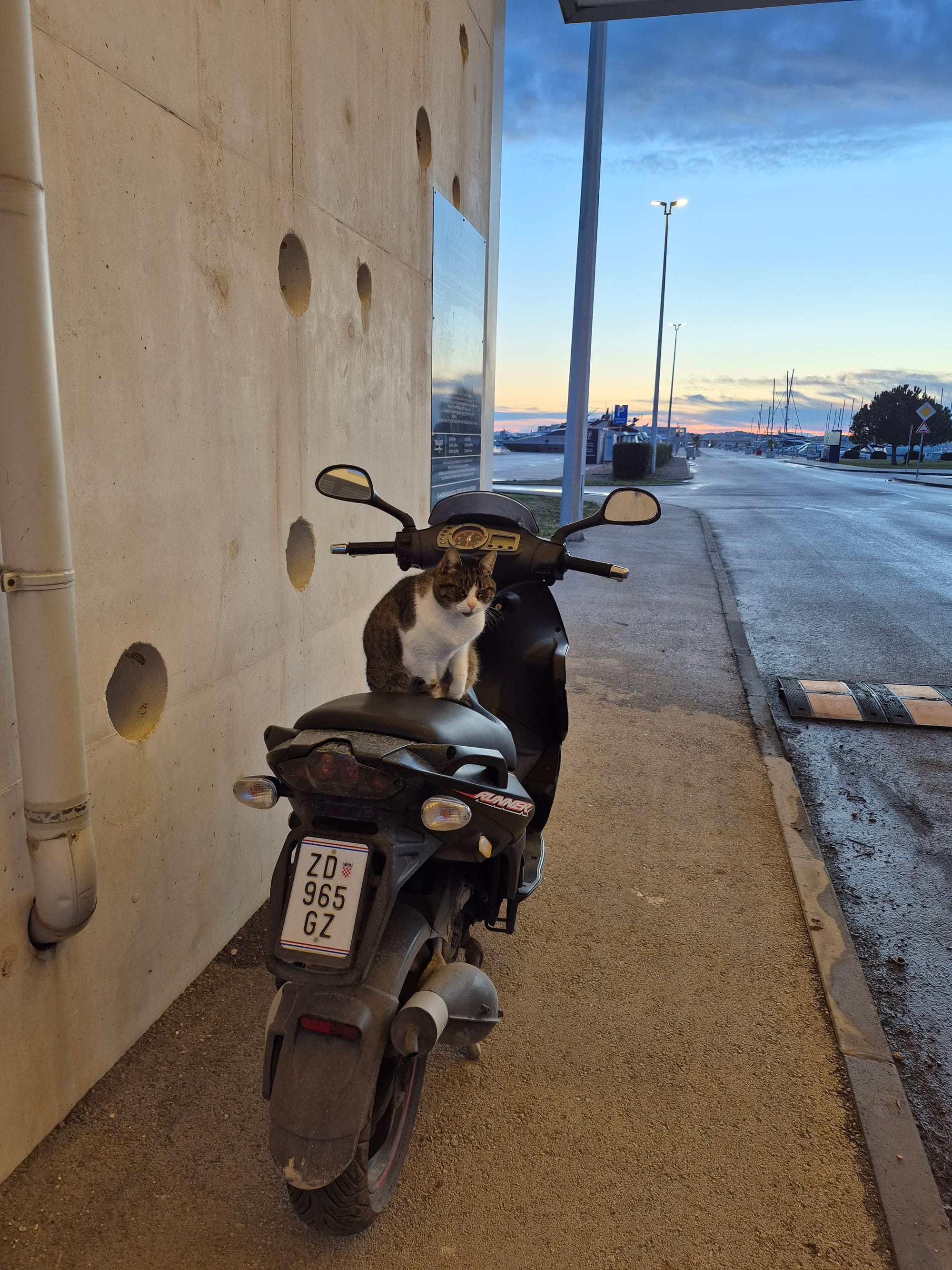Wir spazieren zum Joso und kommen bei der Marina Katze, die immer den Eingang bewacht, vorbei. Diesmal ist sie motorisiert.