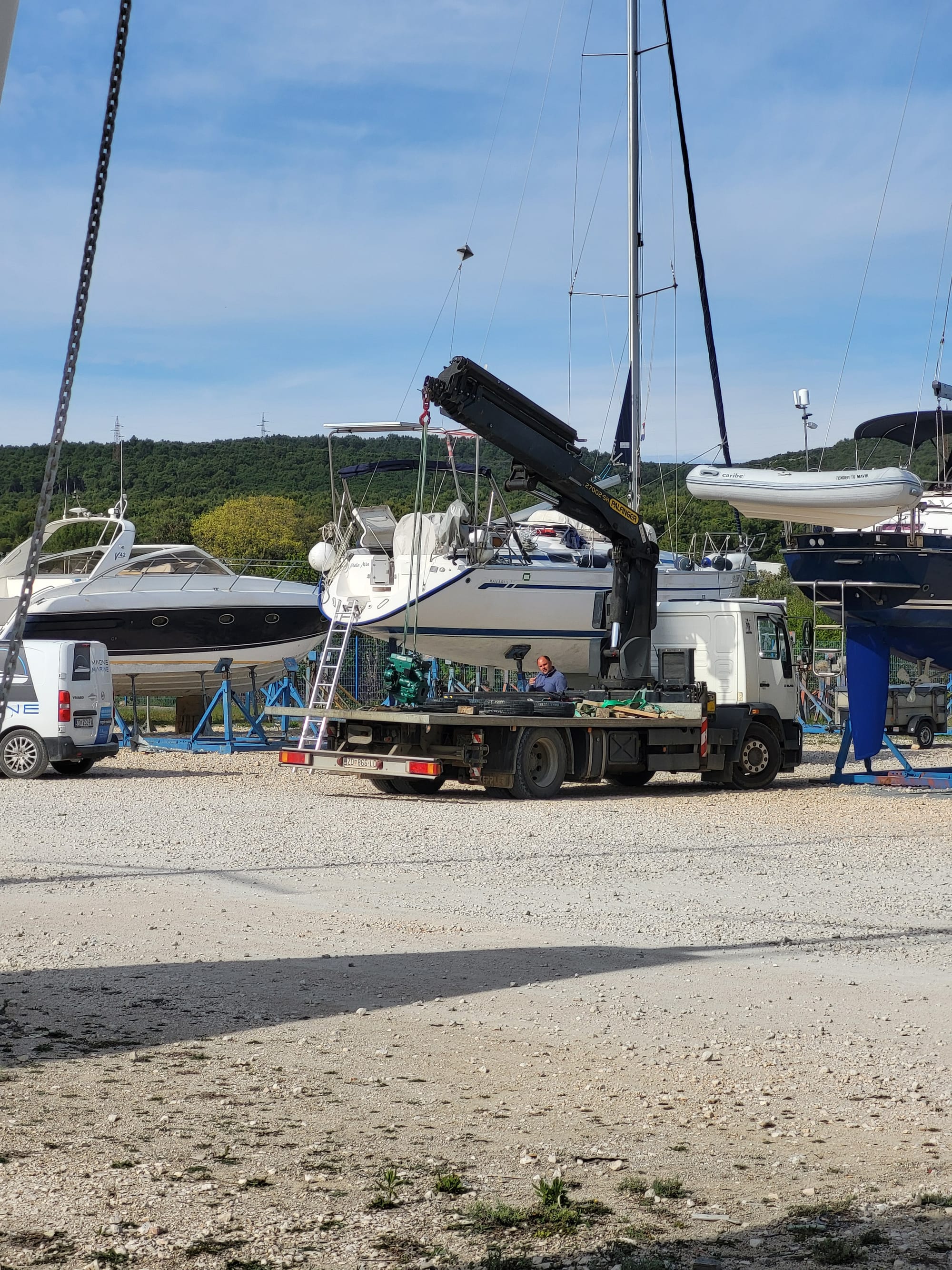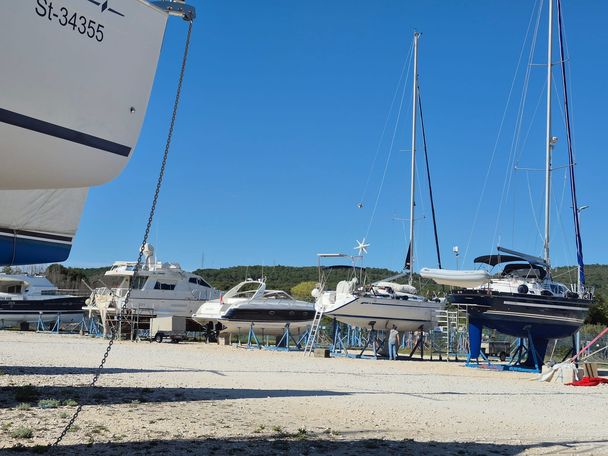 Dann trennen sich kurz unsere Wege. Andreas fährt in den Nautic Shop, ich zum Lebensmitteleinkauf. Dabei parkt unser Golf auf dem Spezialparkplatz der Marina für Kenner, zwischen Branko Servis und D-Marin.
