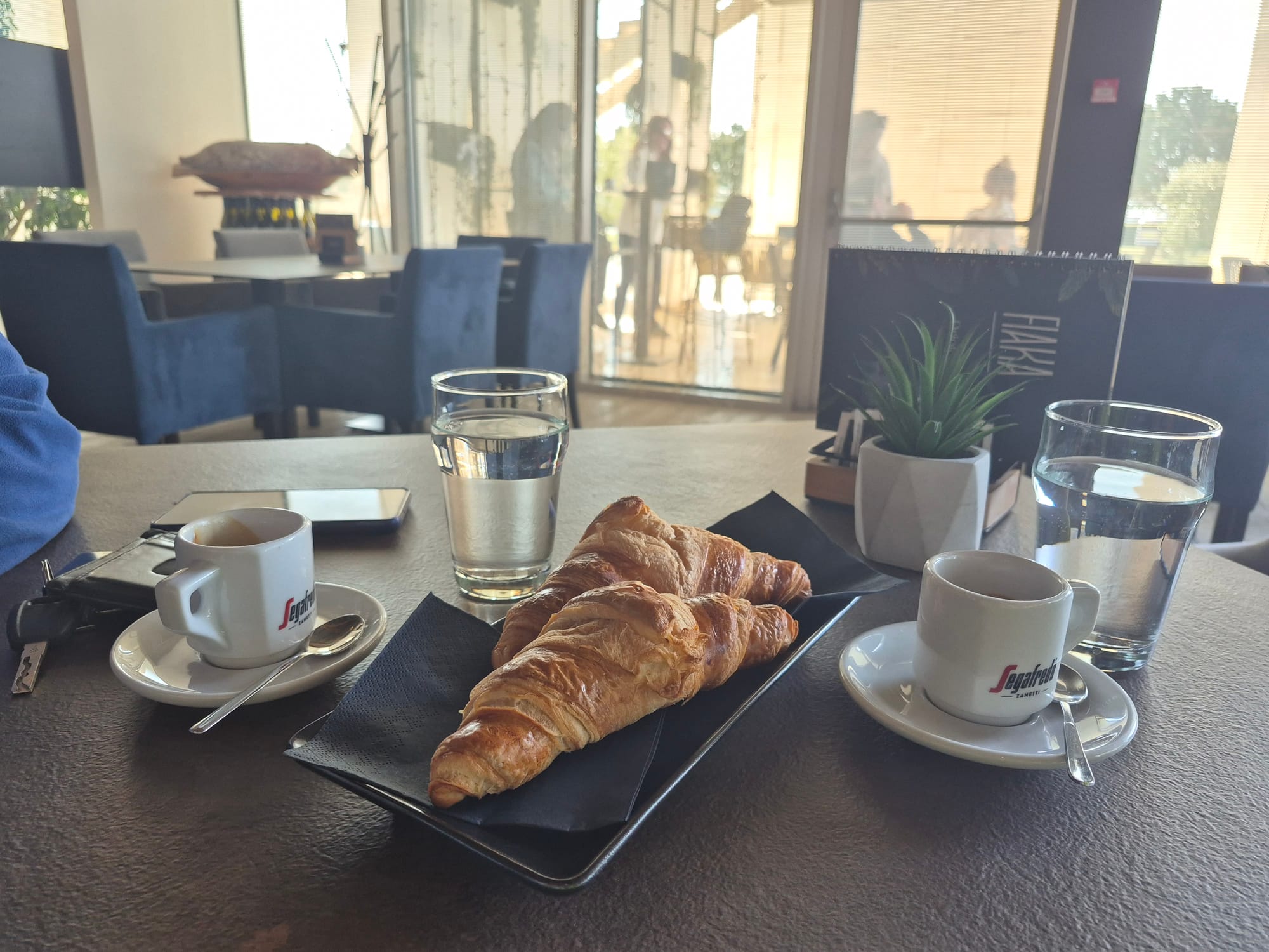 Wir beginnen den Tag mit einem Croissant Frühstück in der Fiaka Bar.
