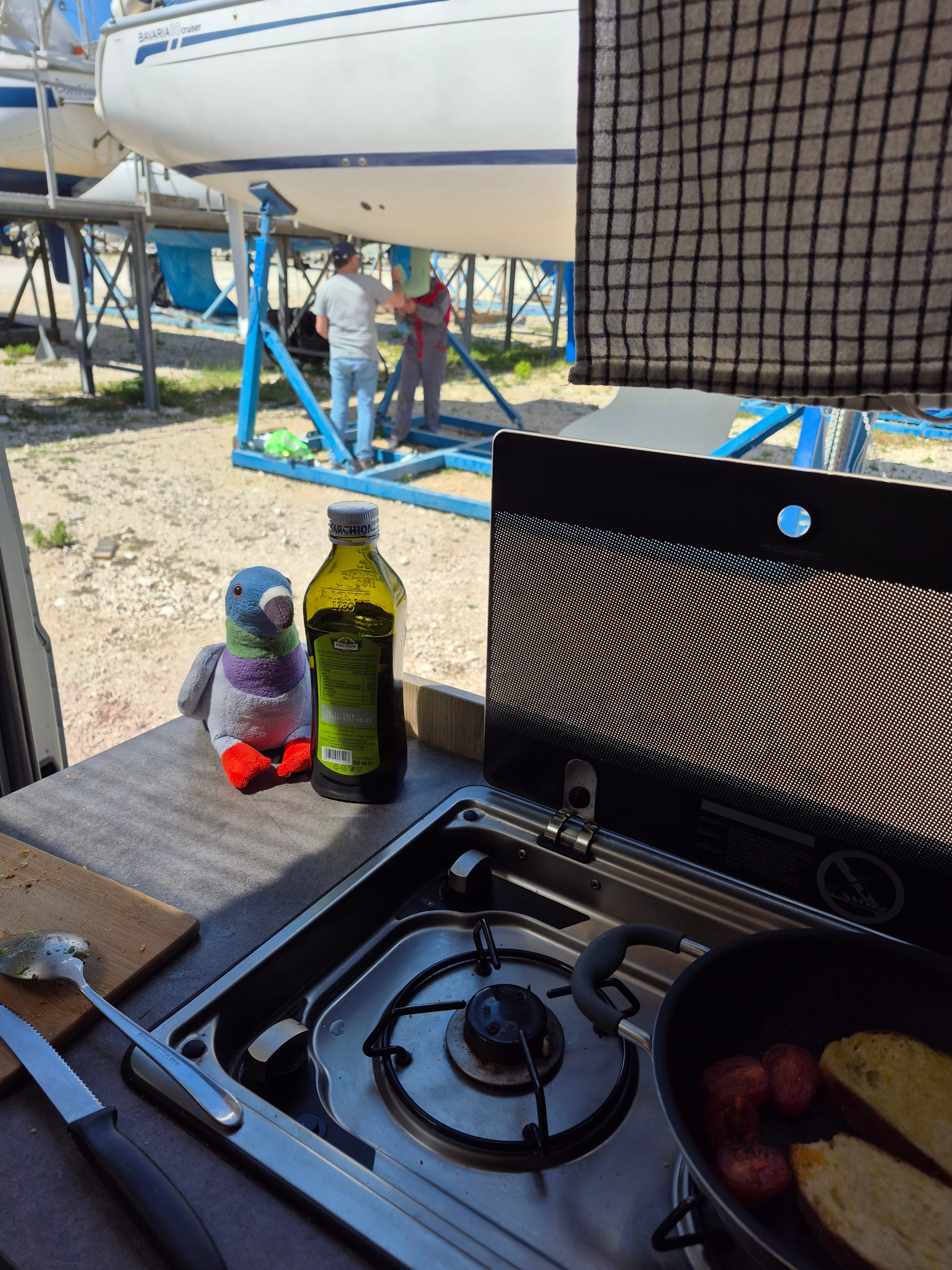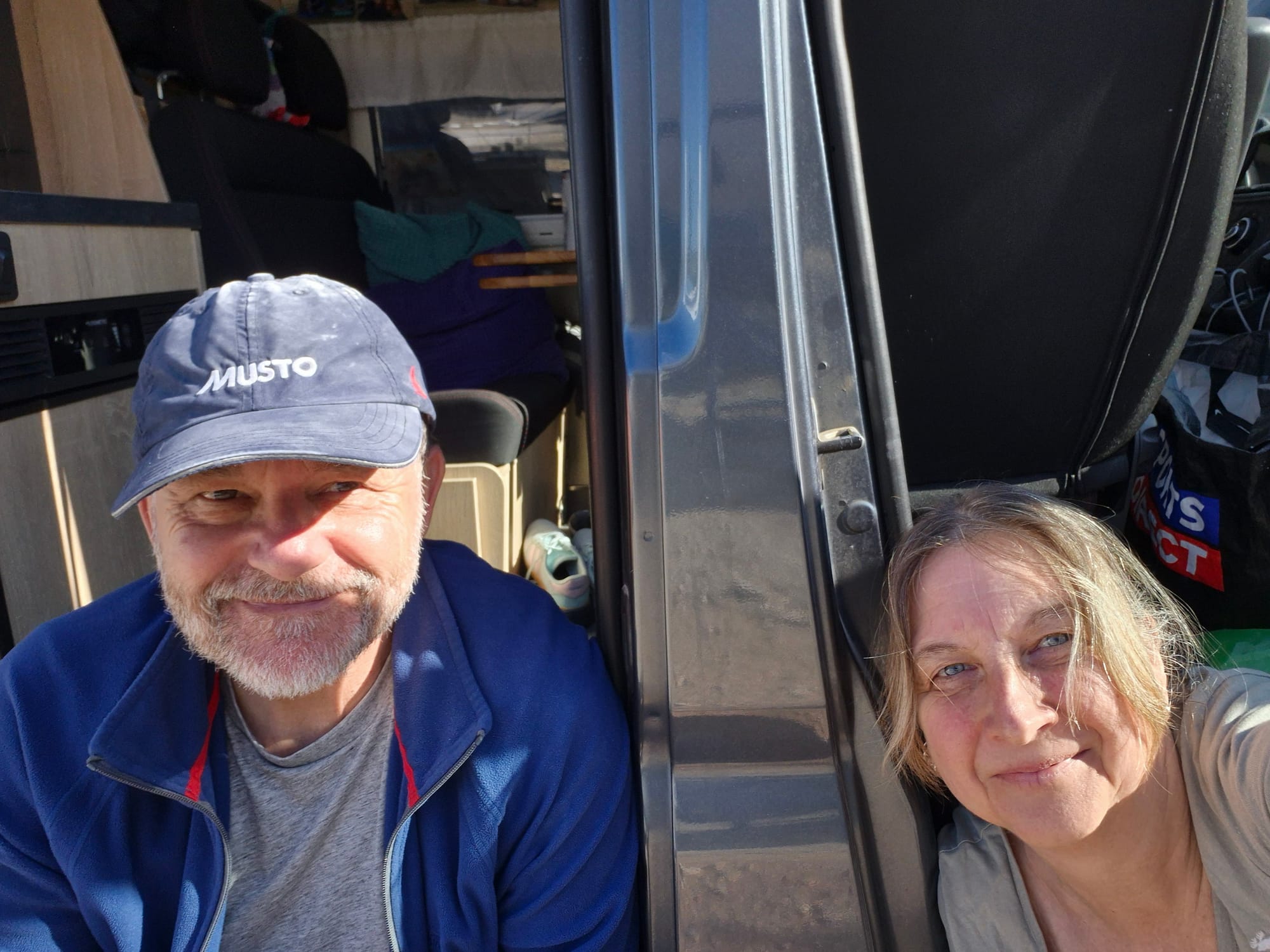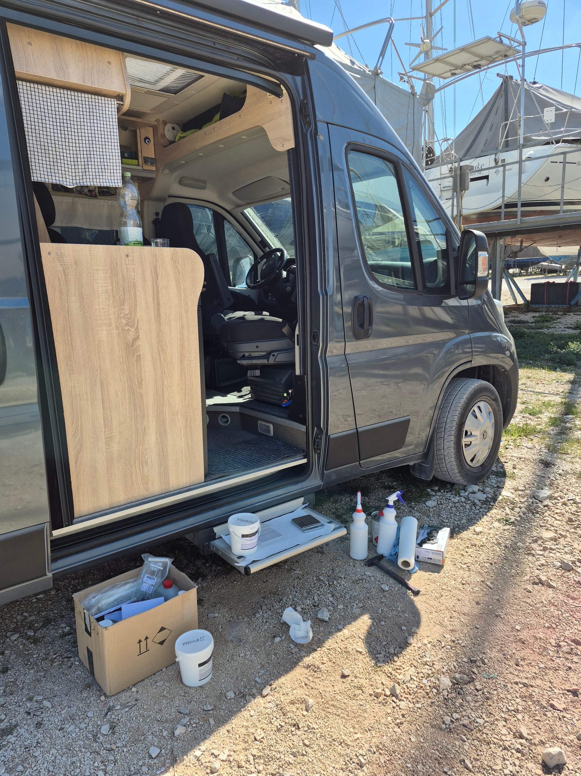 Die Gummilippe muss trocknen und so machen wir vor dem Camper eine Pause...