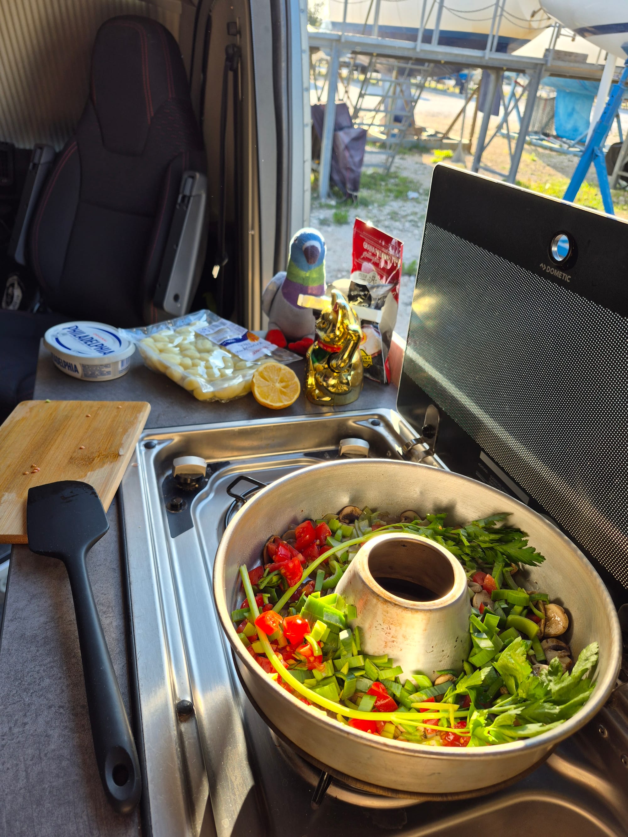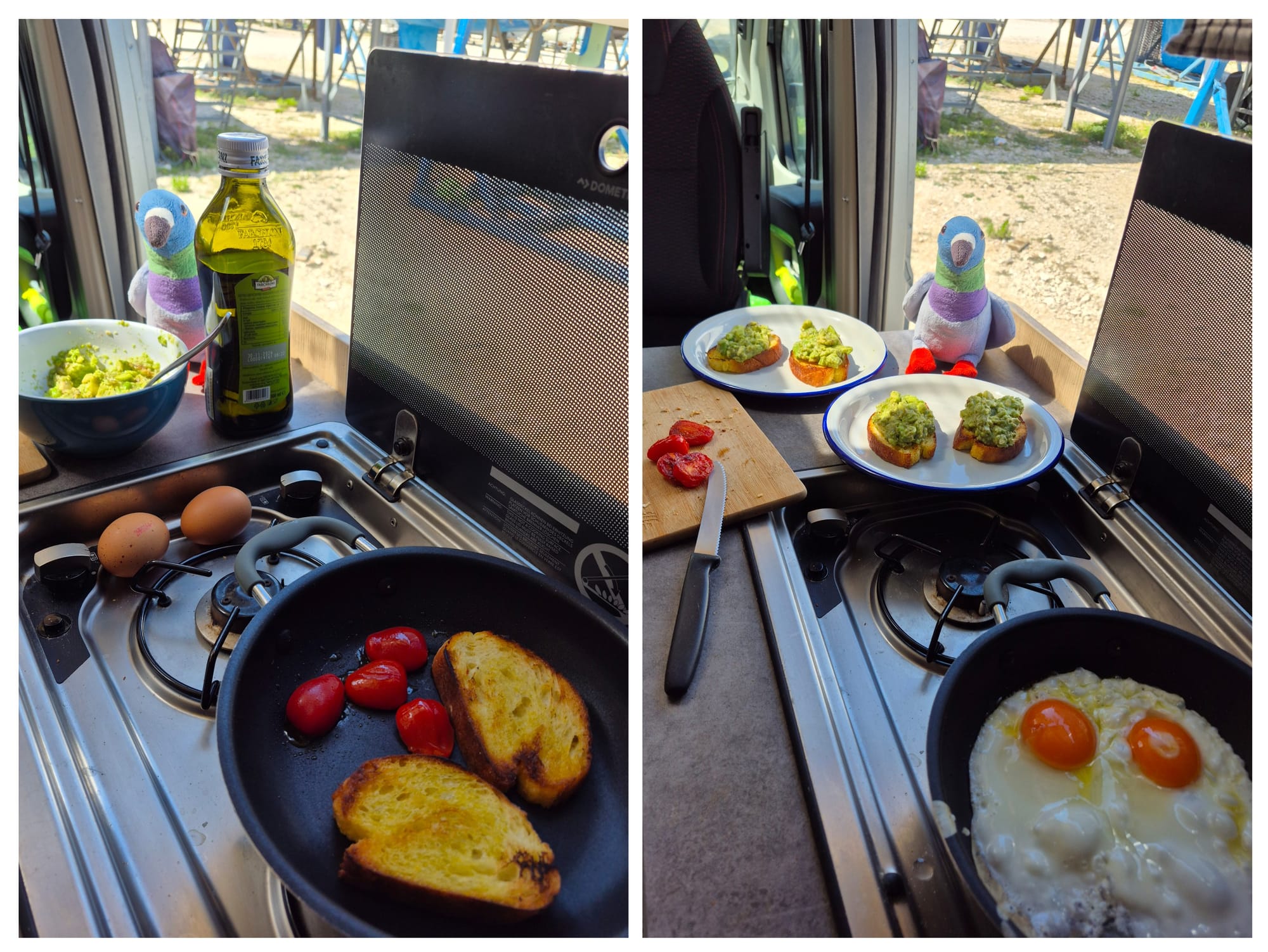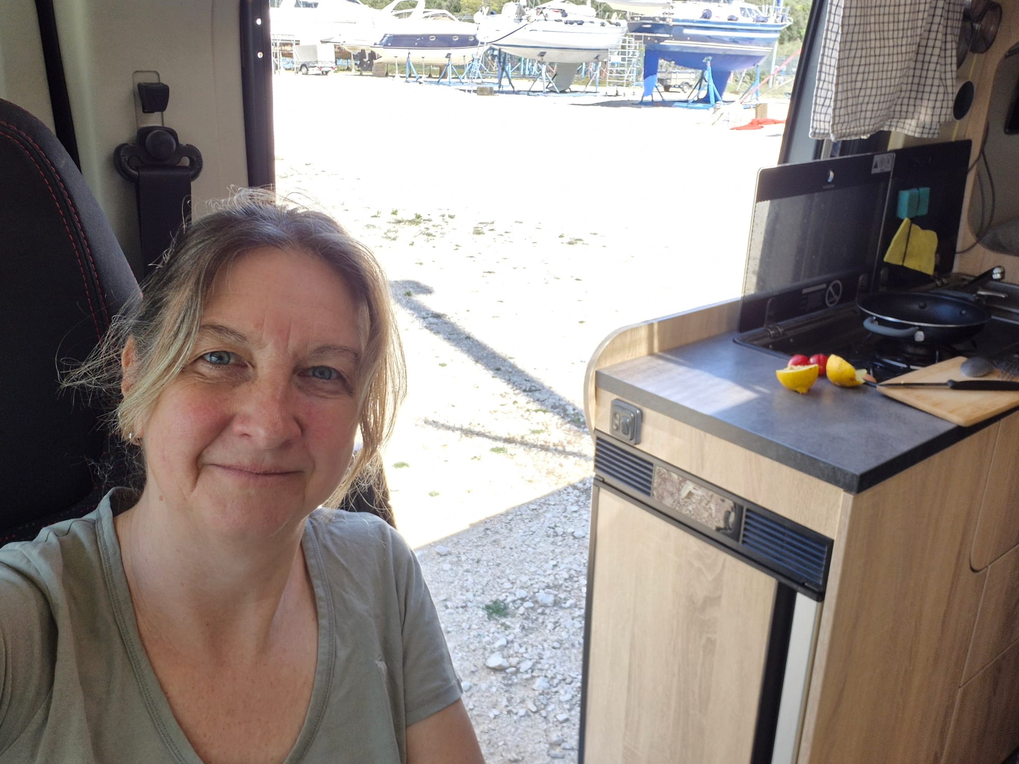 Die Gummilippe muss trocknen und so machen wir vor dem Camper eine Pause...