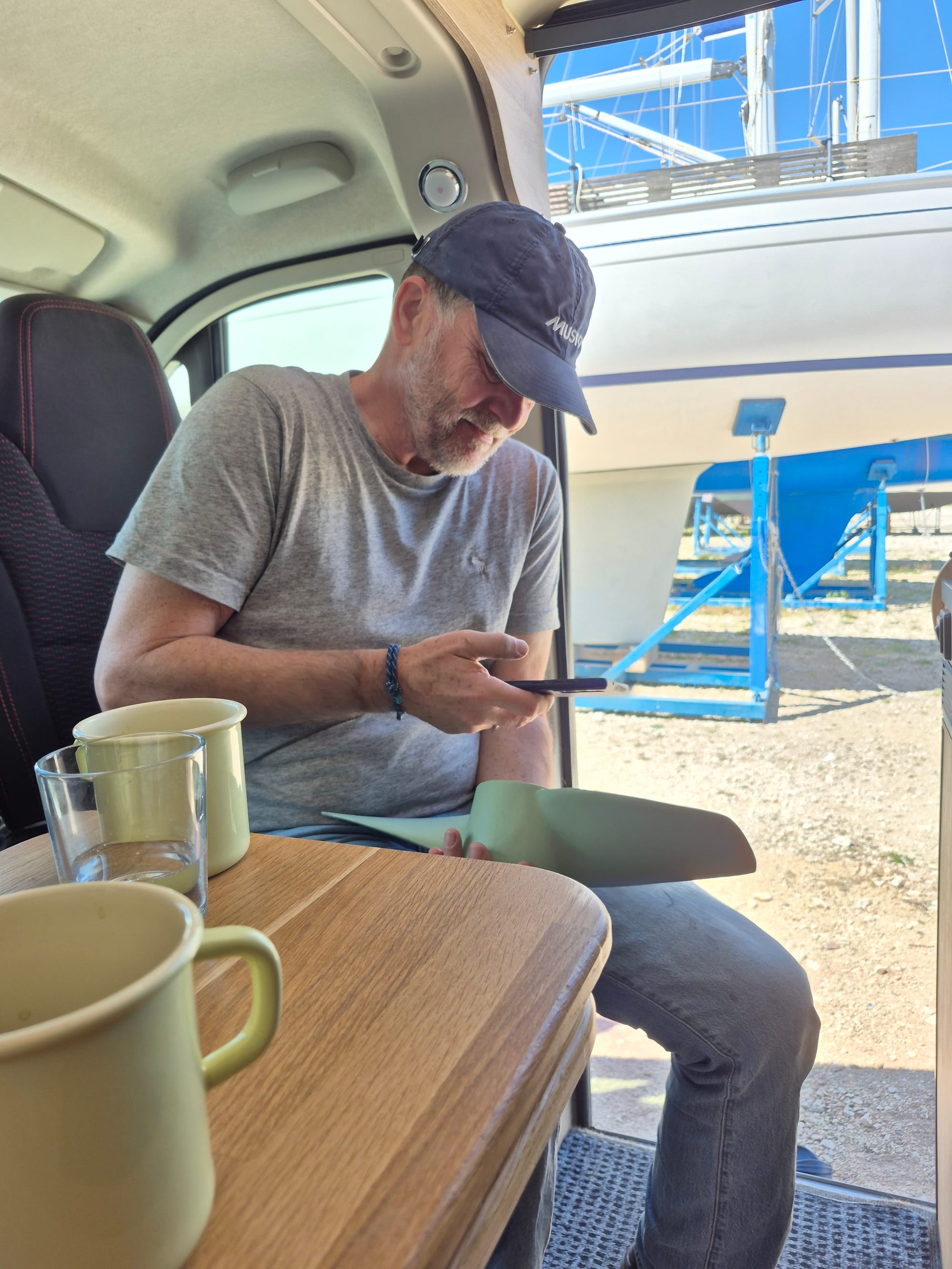 ...und 20 Minuten später ist Dino bei uns und bringt das Werkzeug mit dem sich der Propeller schnell löst. Das war unsere Rettung. 🤗