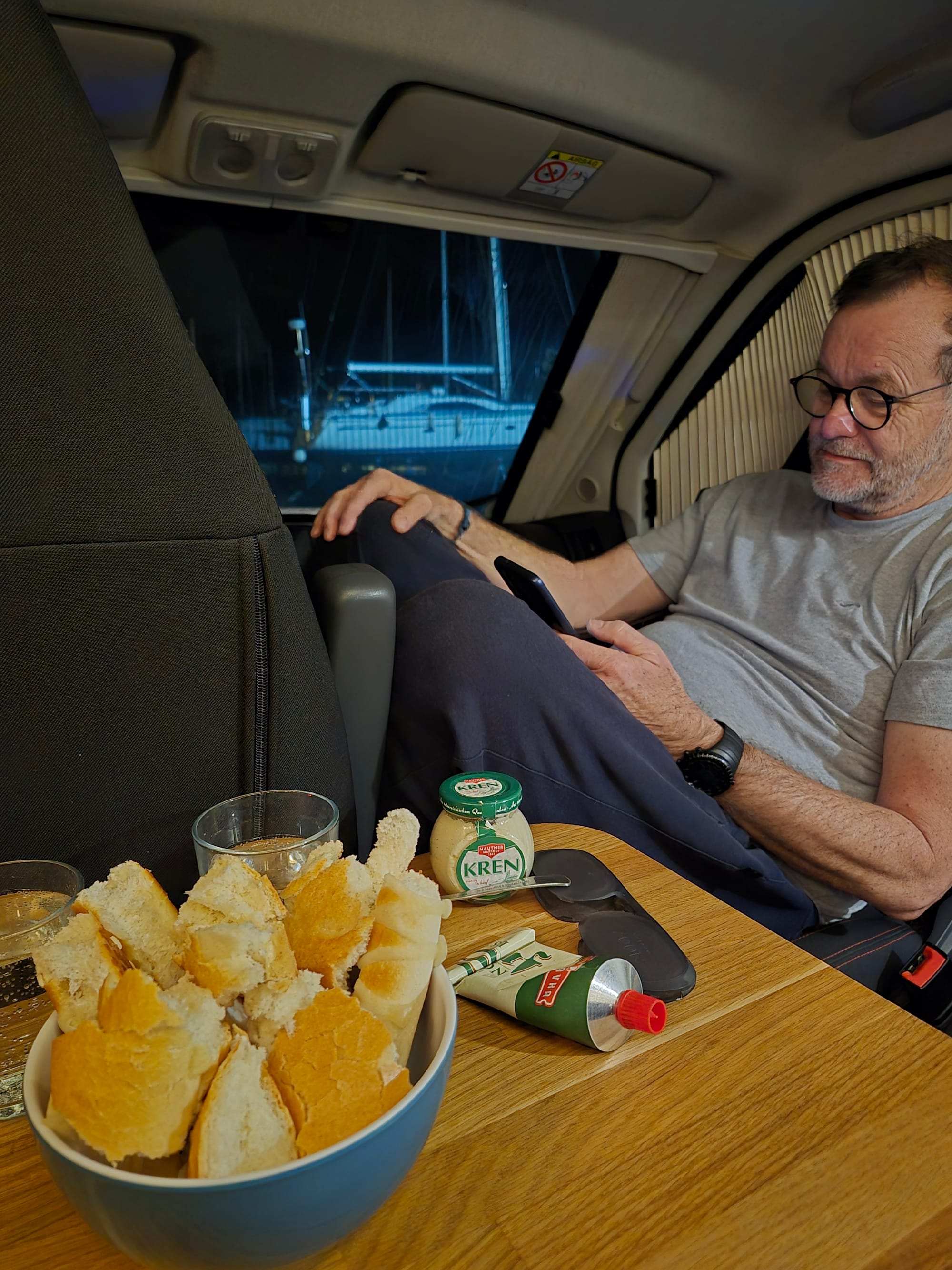 Auf ein Abendessen in einem Lokal haben wir dann keine Lust mehr. Wir holen frisches Gebäck vom Bäcker unseres Vertrauens...