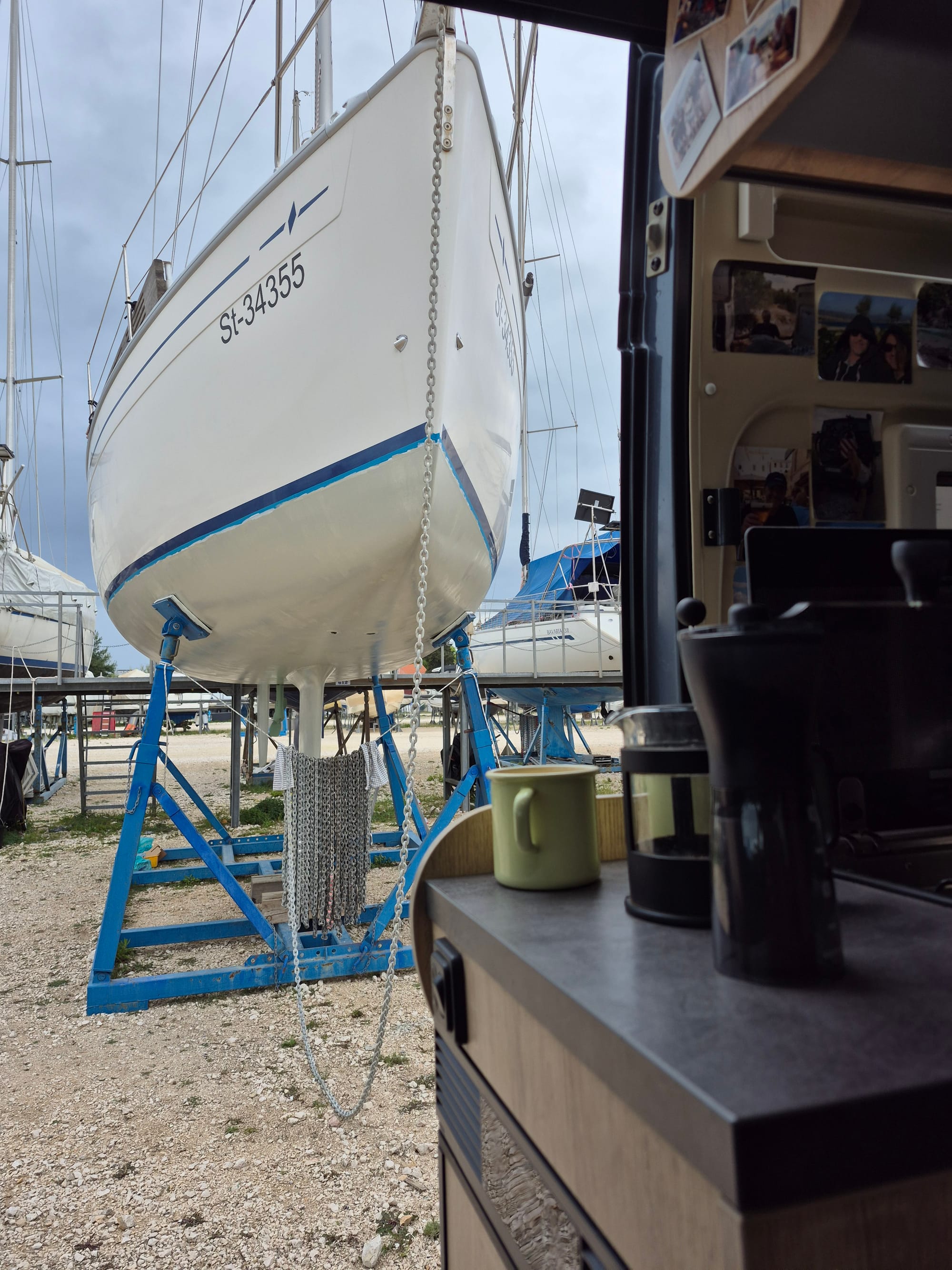 Als erstes waschen wir die Life, nach dem Wind und Regen der letzten zwei Tage, mit Wasser ab.