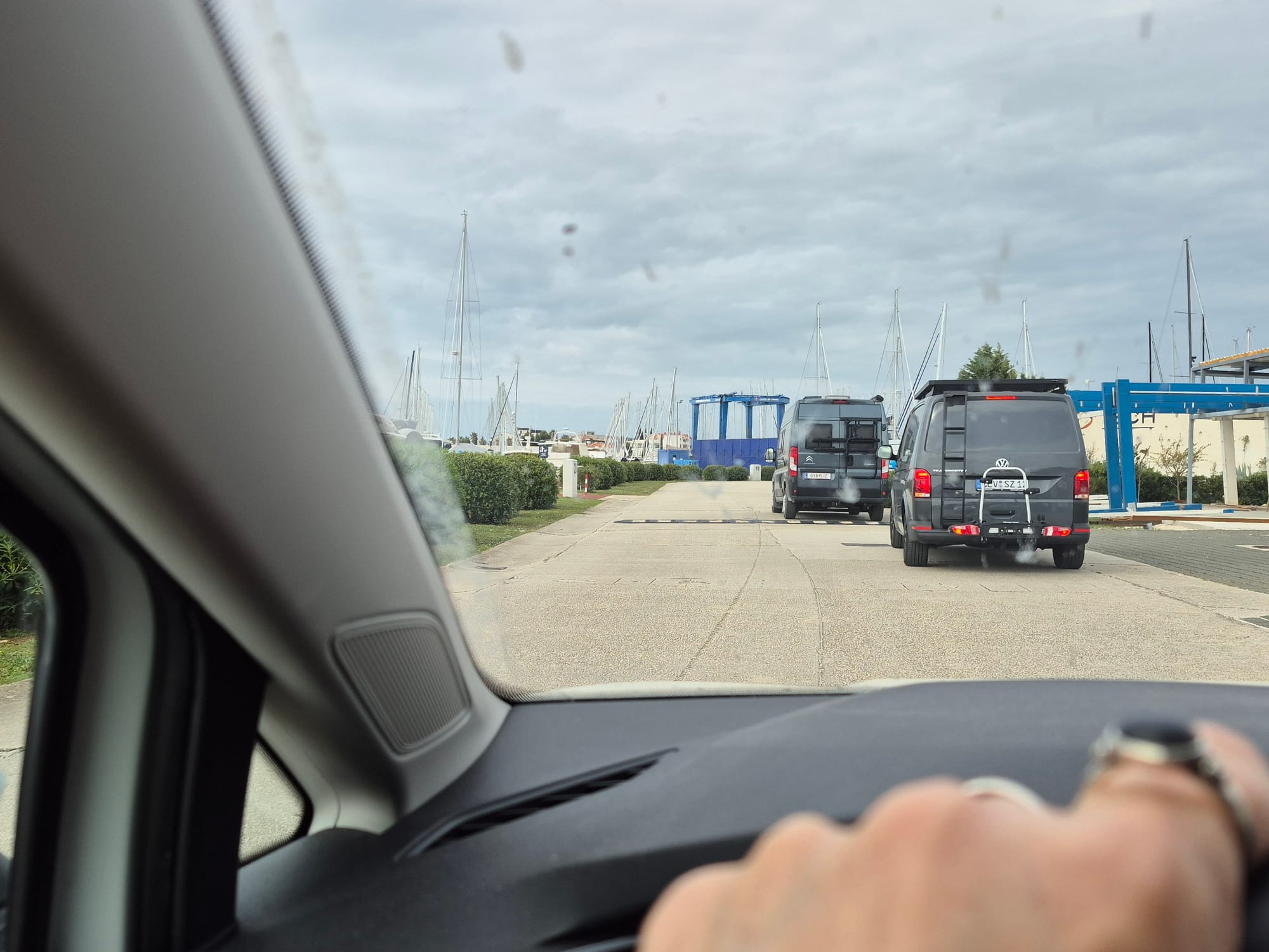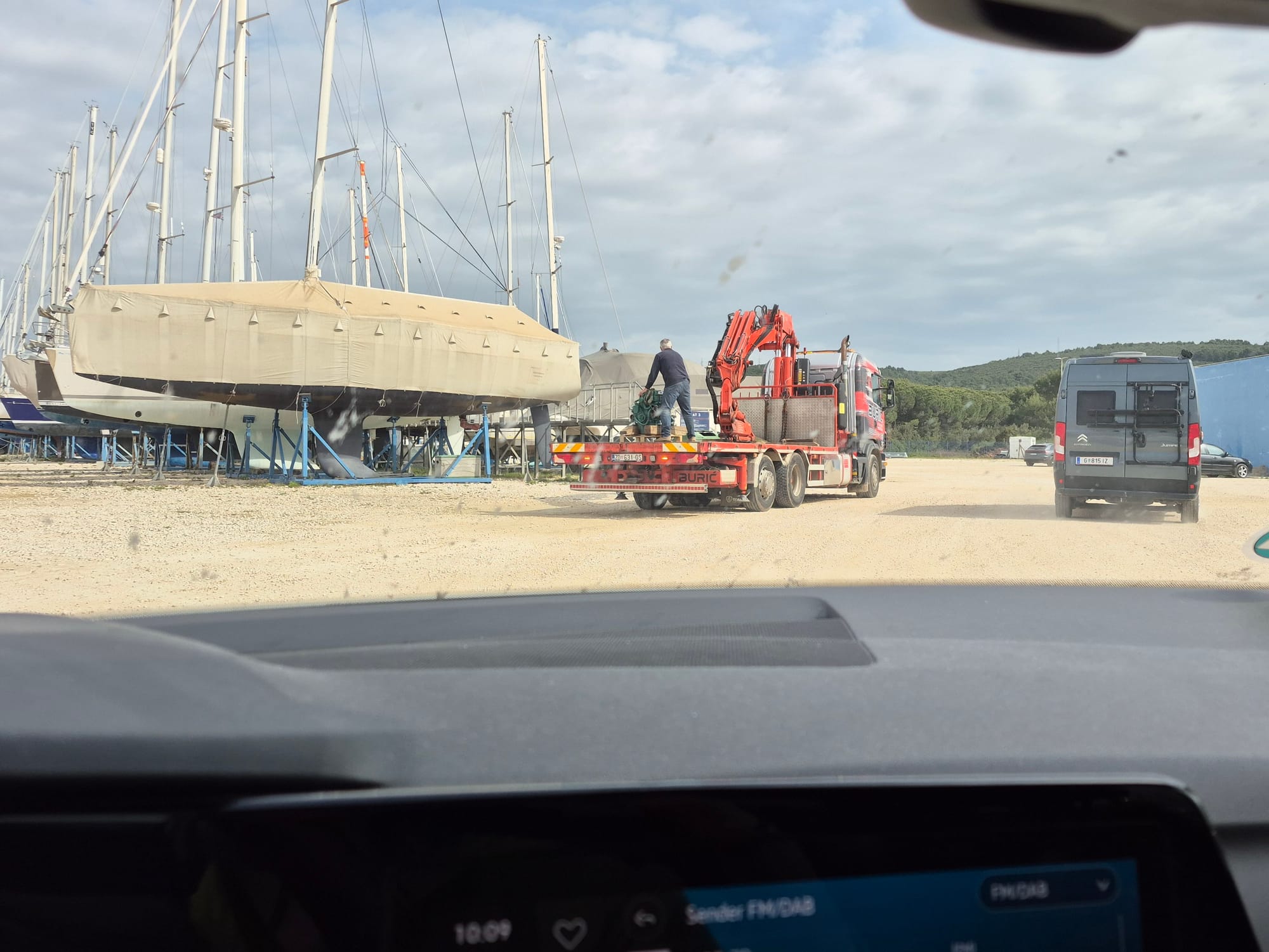 ...und dann geht's "frisch und munter" an die Arbeit. Stephan fährt auch mit, der hat Dieselpest in seinem Tank entdeckt und Andreas begleitet ihn in den Nautic Shop um vielleicht Unterstützung bei Antes Bruder einzuholen.
