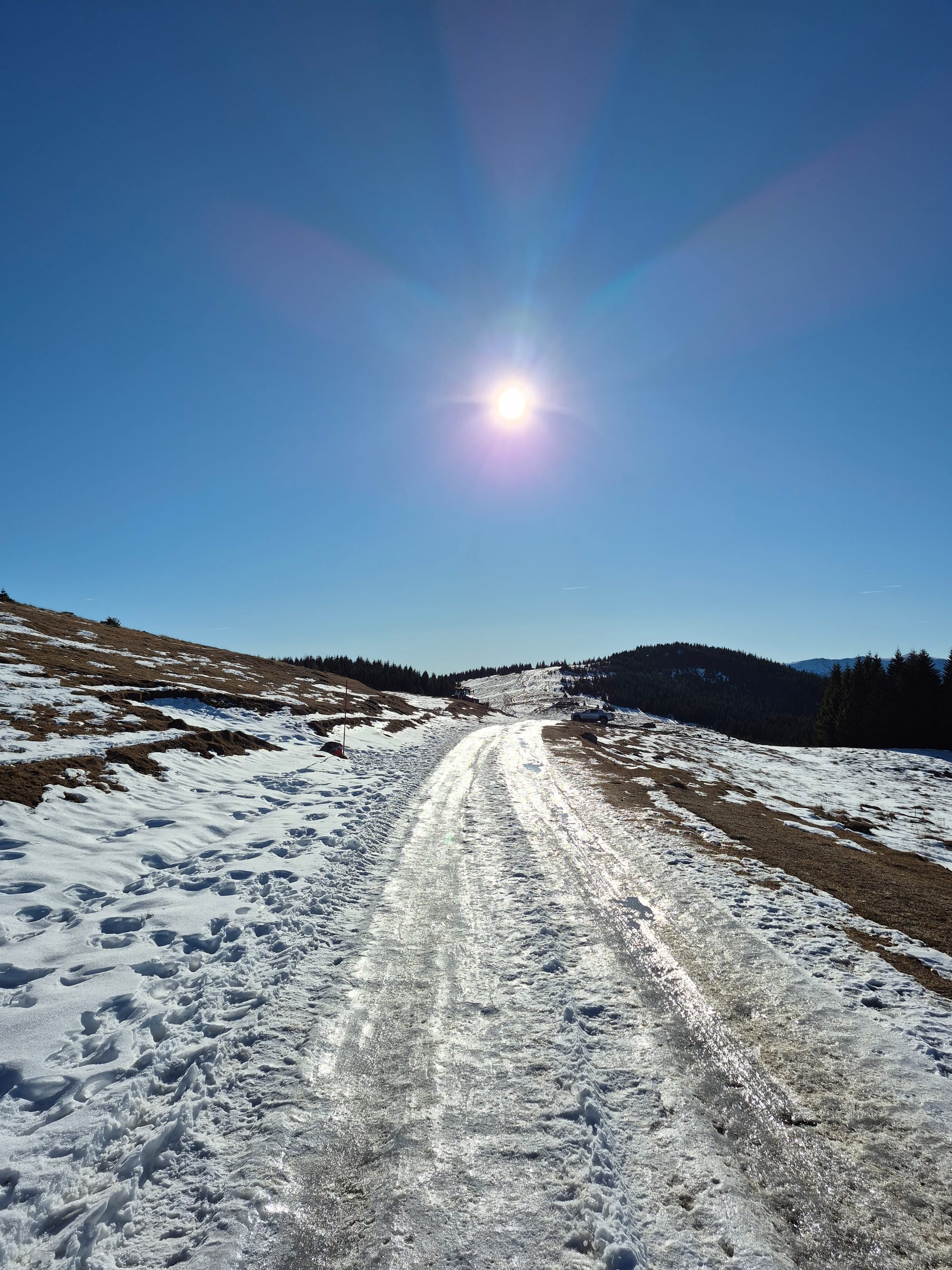 Das letzte Stück der Anfahrt mit dem Auto zum Alten Almhaus war sehr eisig und wir wollen rechtzeitig für die Abfahrt zurück sein.