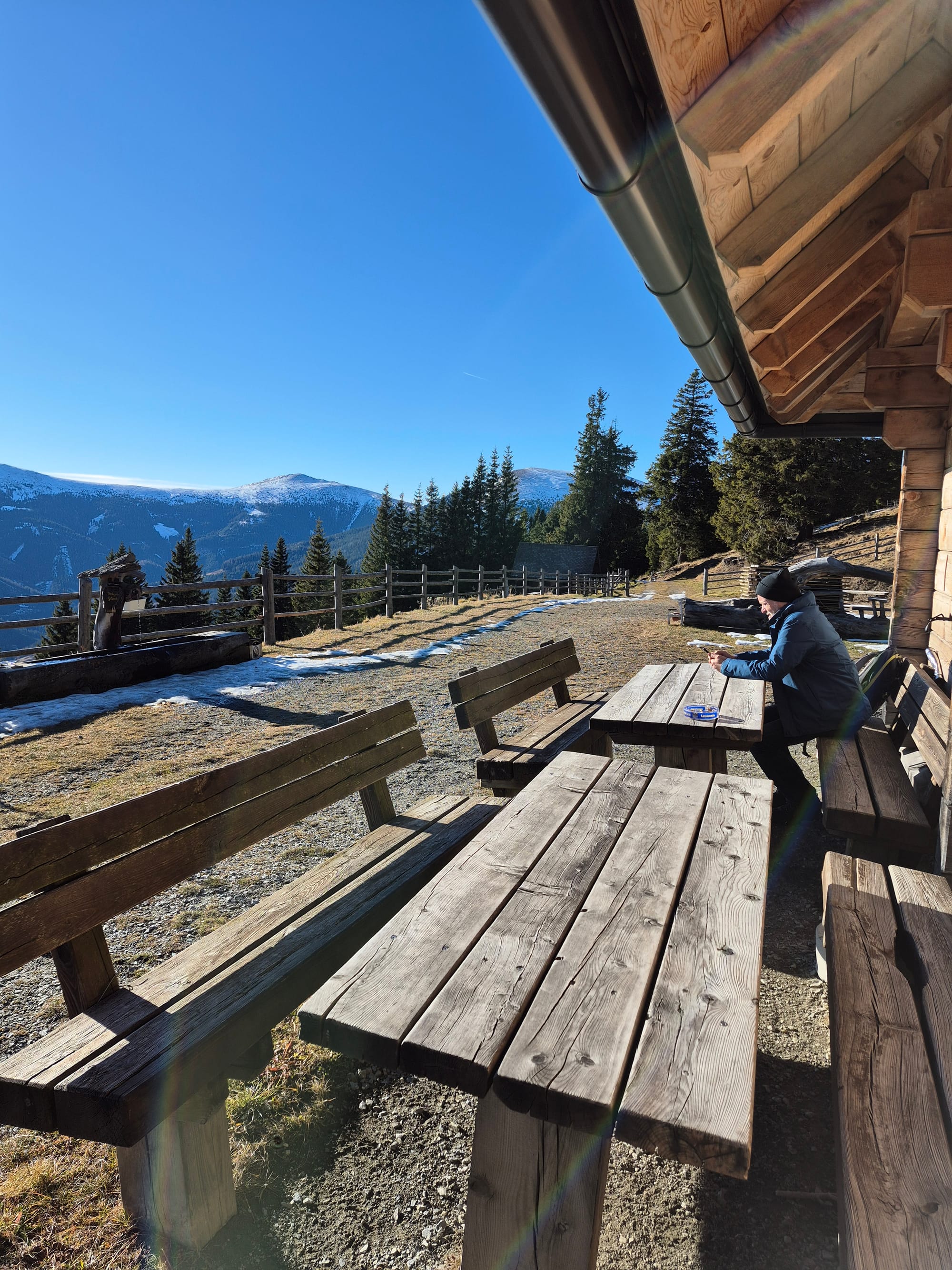 Bei der Hütte angekommen genießen wir den blauen Himmel...